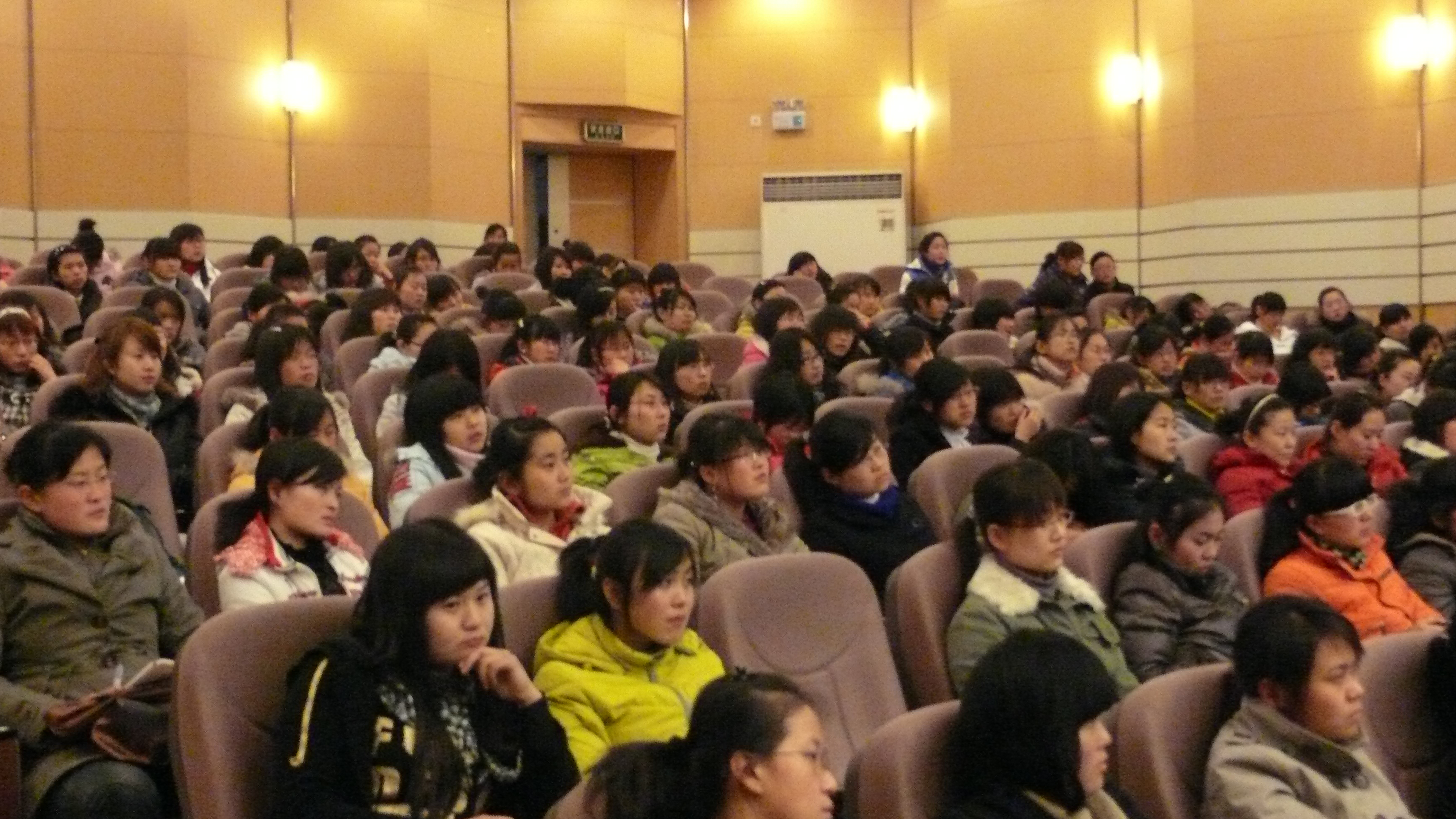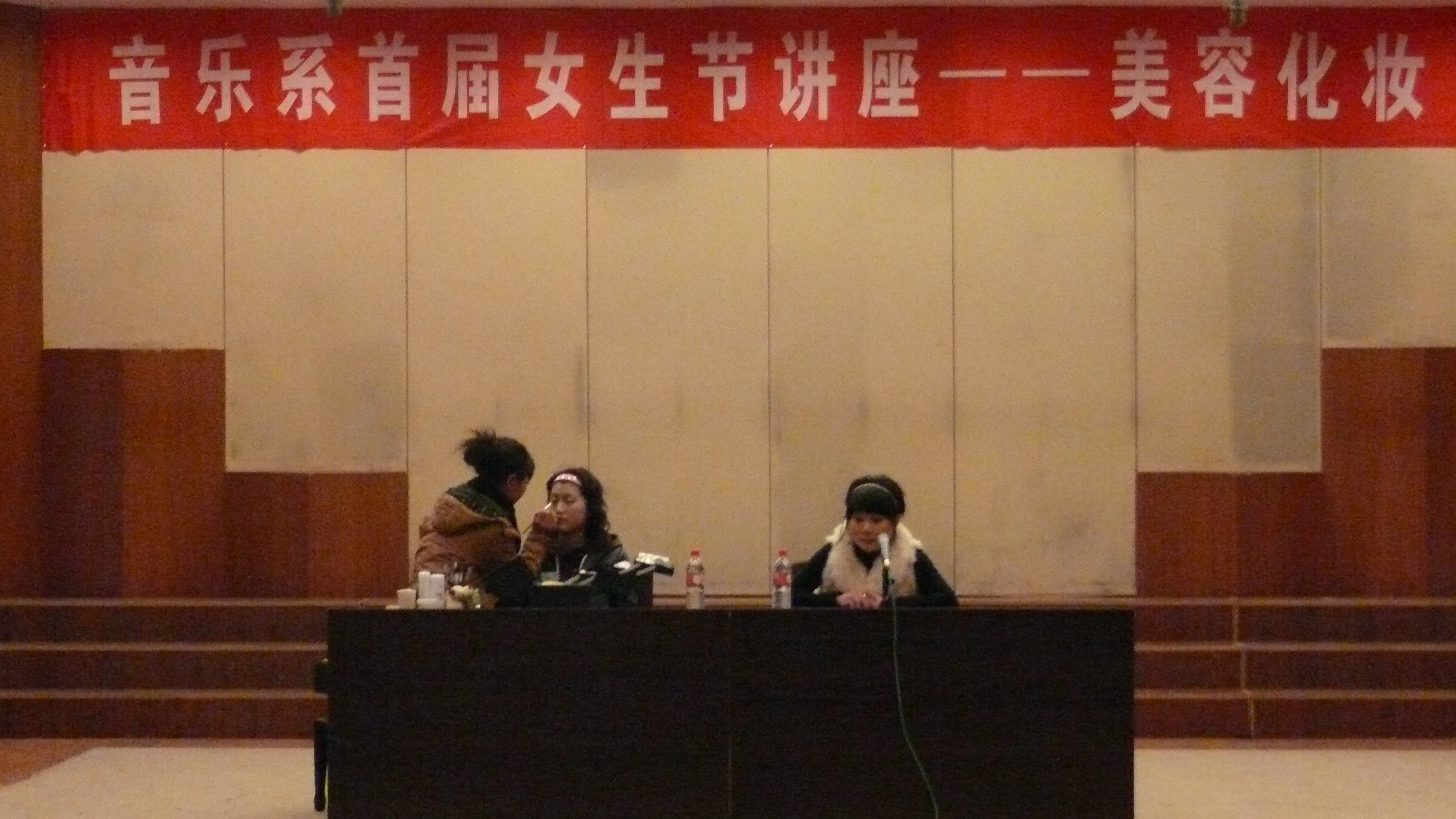 阳春三月,春意怏然。在这个美丽而浪漫的季节,为了让广大女生更加领略到美丽的秘密,3月5日晚7:00,音乐系学生会特聘请靓妆堂婚纱礼服店的专业化妆师在音乐厅为广大同学开了一节近2个小时生动的美容化妆讲座,同学们兴致极高,诺大的教室座无虚席。