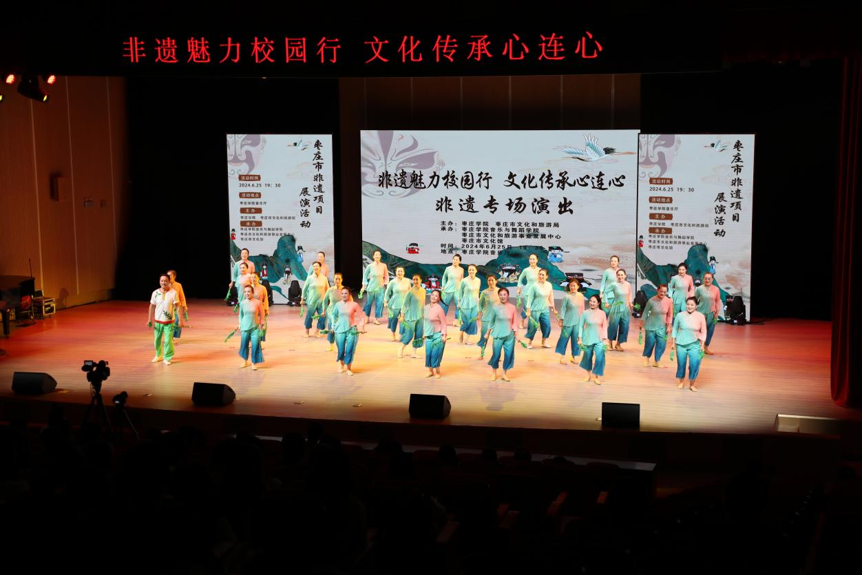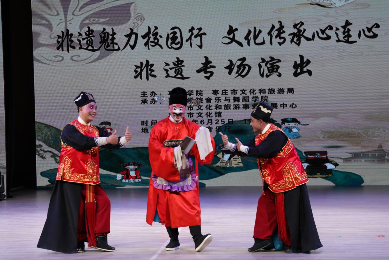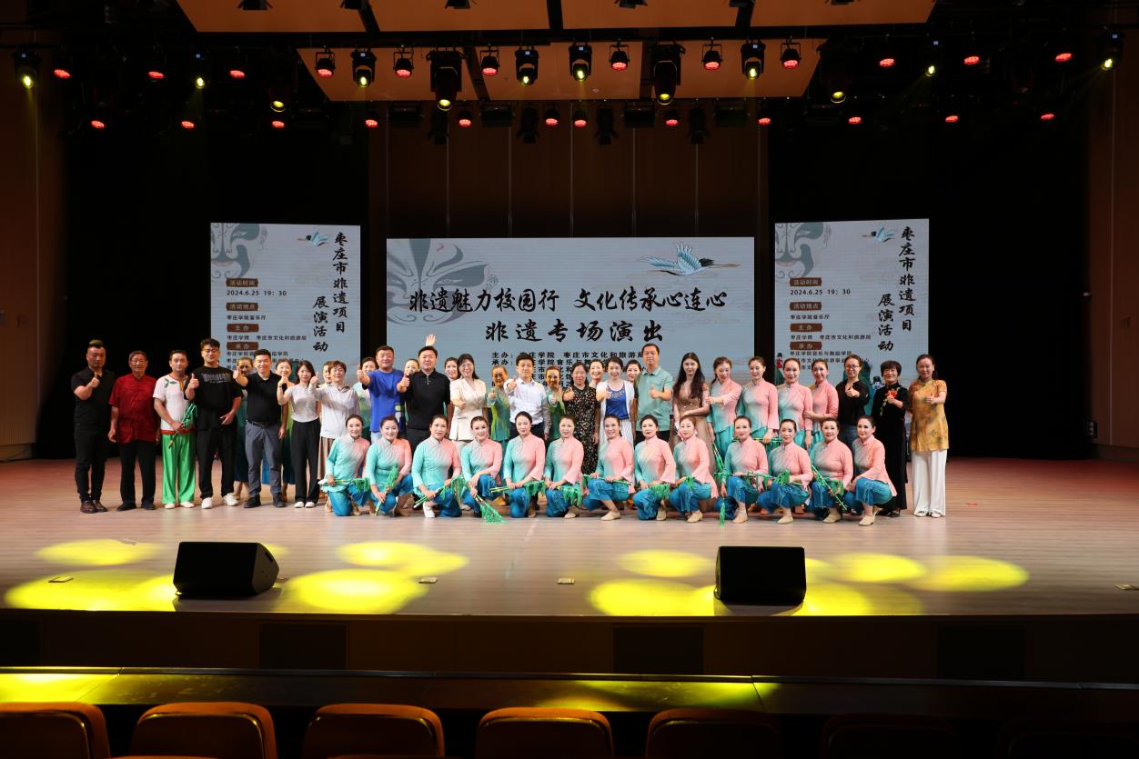 6月25日,由beat365英国官网网站、枣庄市文化和旅游局主办,beat365英国官网网站、枣庄市文化和旅游事业发展中心、枣庄市文化馆协办的“非遗魅力校园行,文化传承心连心”枣庄市非遗项目展演活动在beat365官网音乐厅上演。此次活动旨在传承和弘扬地方优秀传统文化,增强师生民族自豪感、责任感,树立文化自信,进一步引导教师将地方优秀传统文化融入教学、开展科研的积极性,促进非遗项目在年轻一代中的传播。