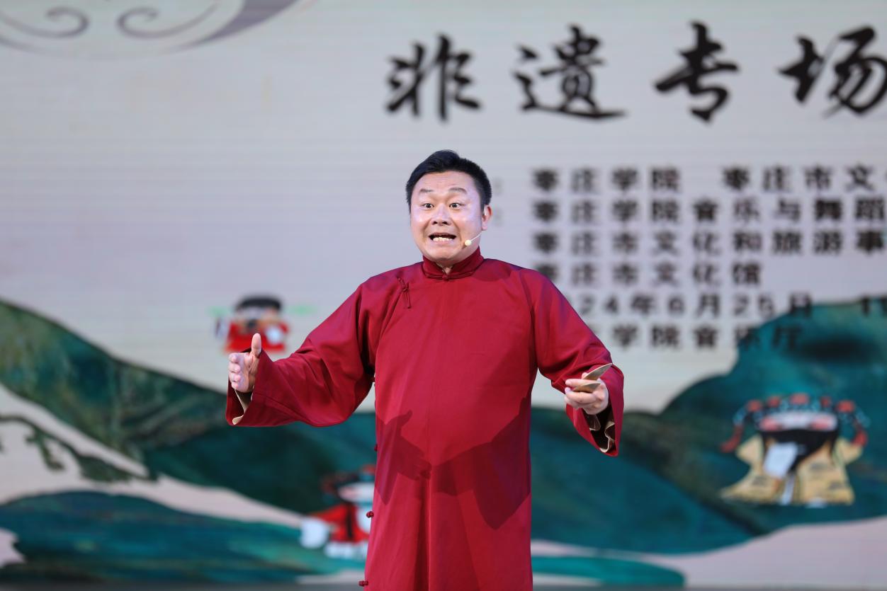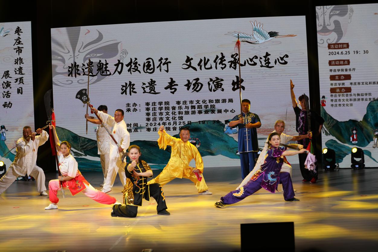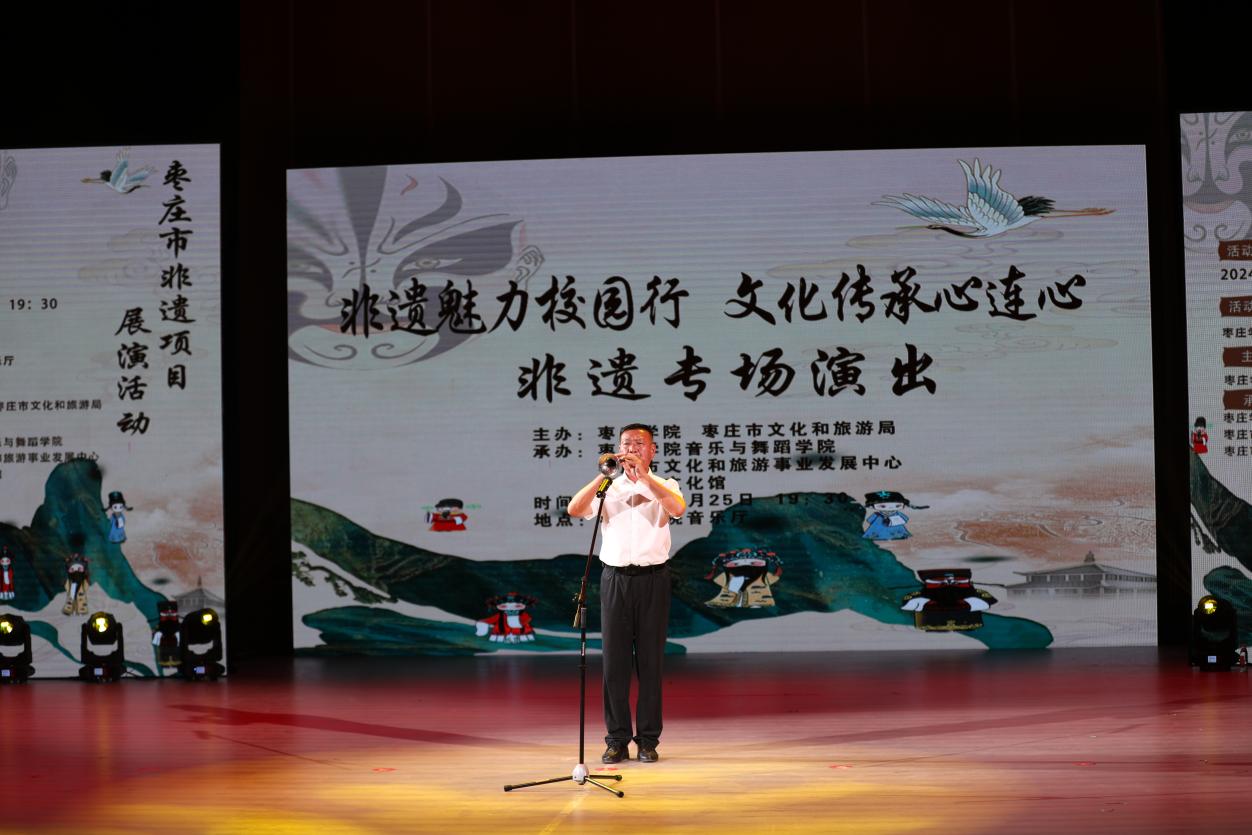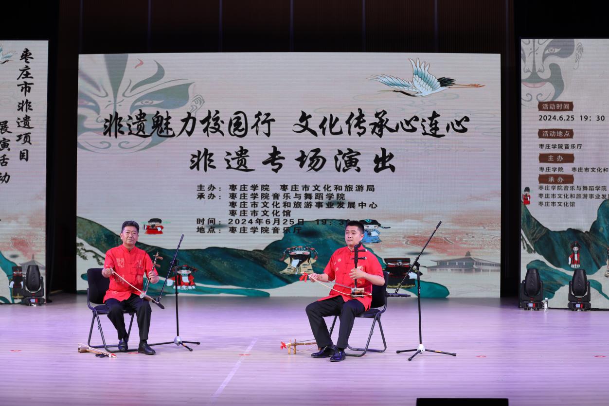 6月25日,由beat365英国官网网站、枣庄市文化和旅游局主办,beat365英国官网网站、枣庄市文化和旅游事业发展中心、枣庄市文化馆协办的“非遗魅力校园行,文化传承心连心”枣庄市非遗项目展演活动在beat365官网音乐厅上演。此次活动旨在传承和弘扬地方优秀传统文化,增强师生民族自豪感、责任感,树立文化自信,进一步引导教师将地方优秀传统文化融入教学、开展科研的积极性,促进非遗项目在年轻一代中的传播。