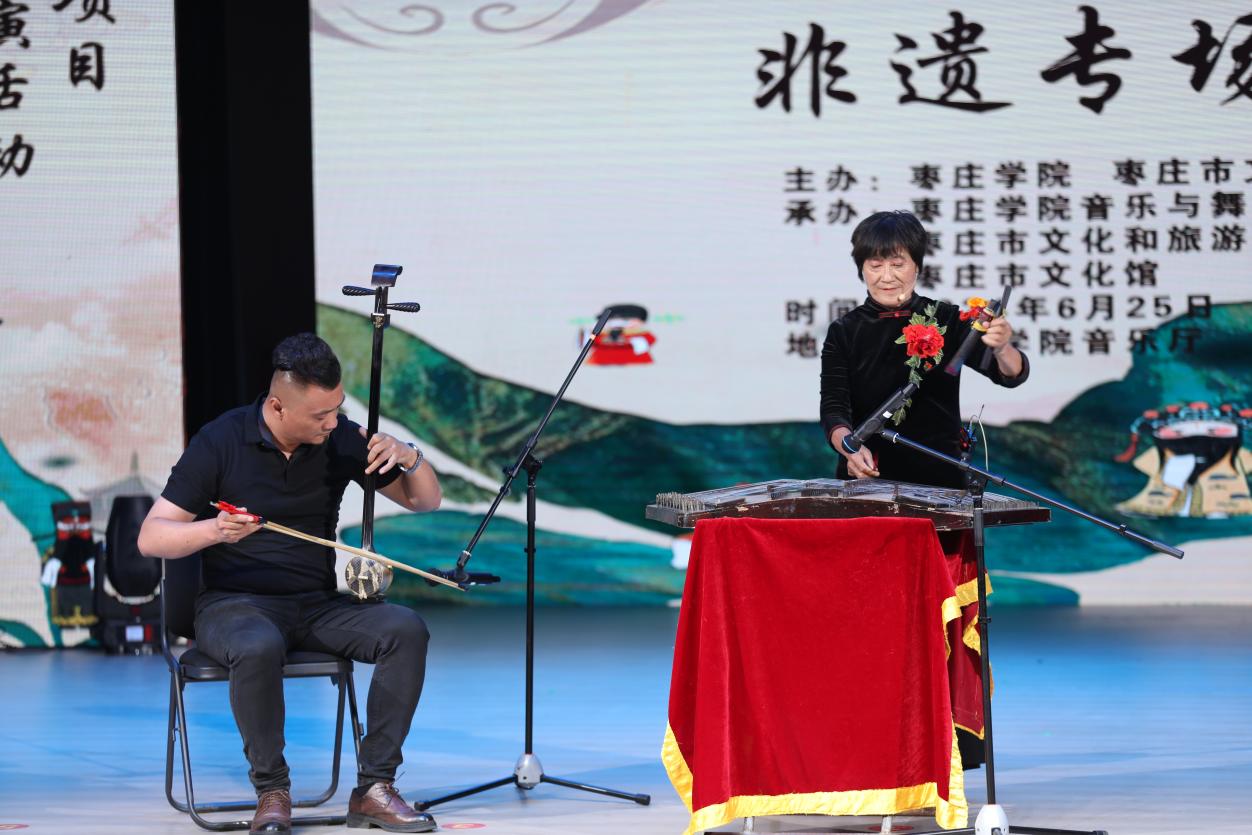 活动现场,山东琴书、枣庄柳琴戏、铜杆唢呐、软弓京胡、鼓儿词、鲁南花棍舞等多个非遗项目逐一登场。艺人们的精彩表演,让师生们充分感受到了地方非遗的独特魅力。展演现场,师生们掌声热烈、热情高涨,很多同学第一次近距离接触这些地方传统音乐,感受到非遗项目的魅力。