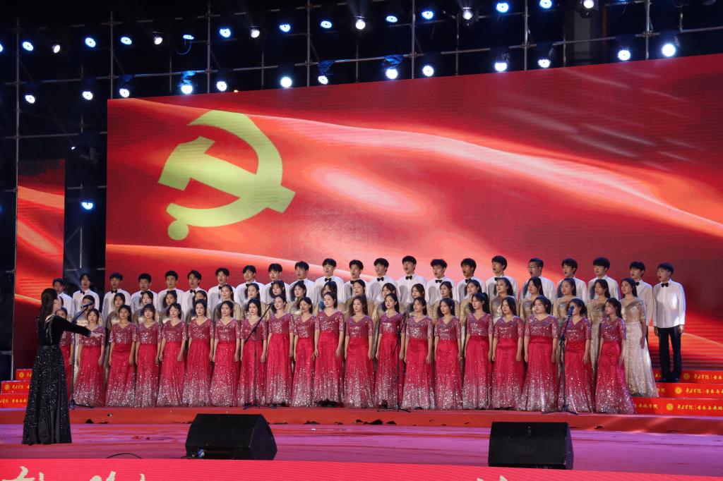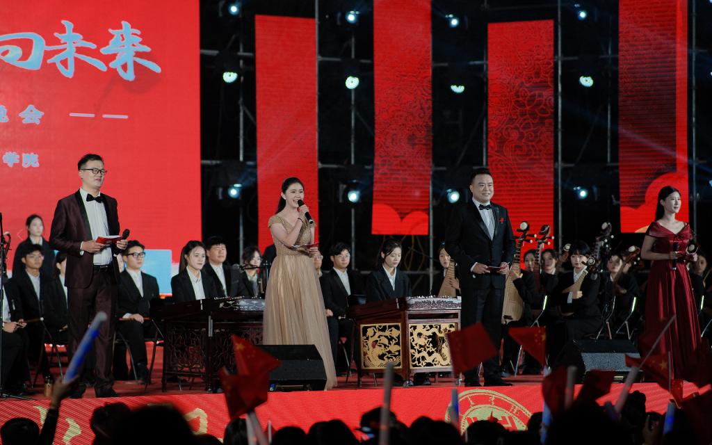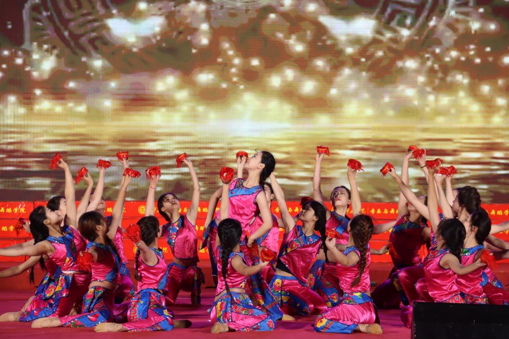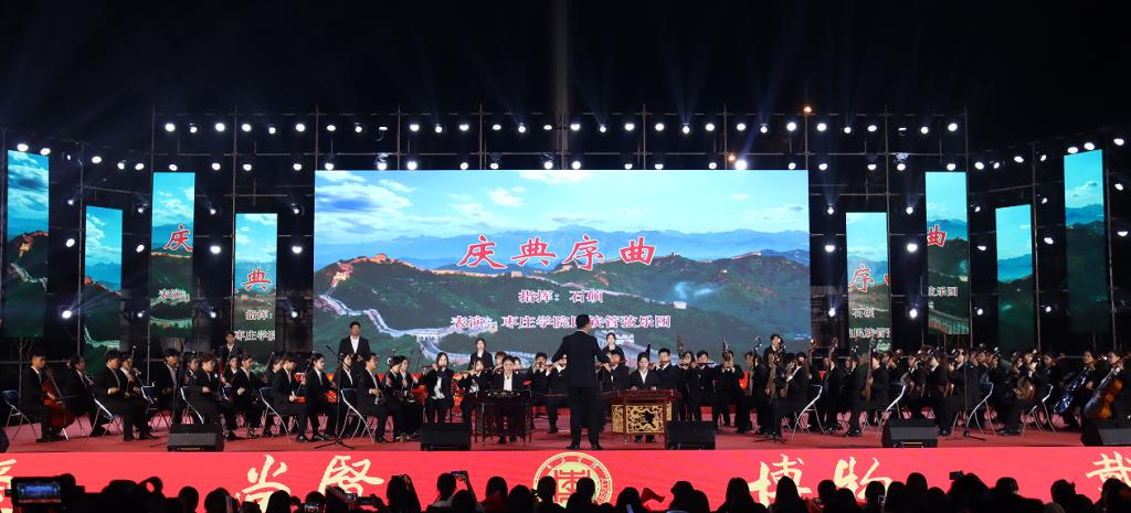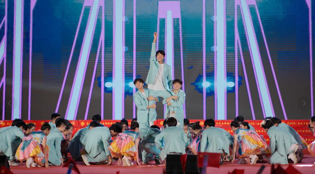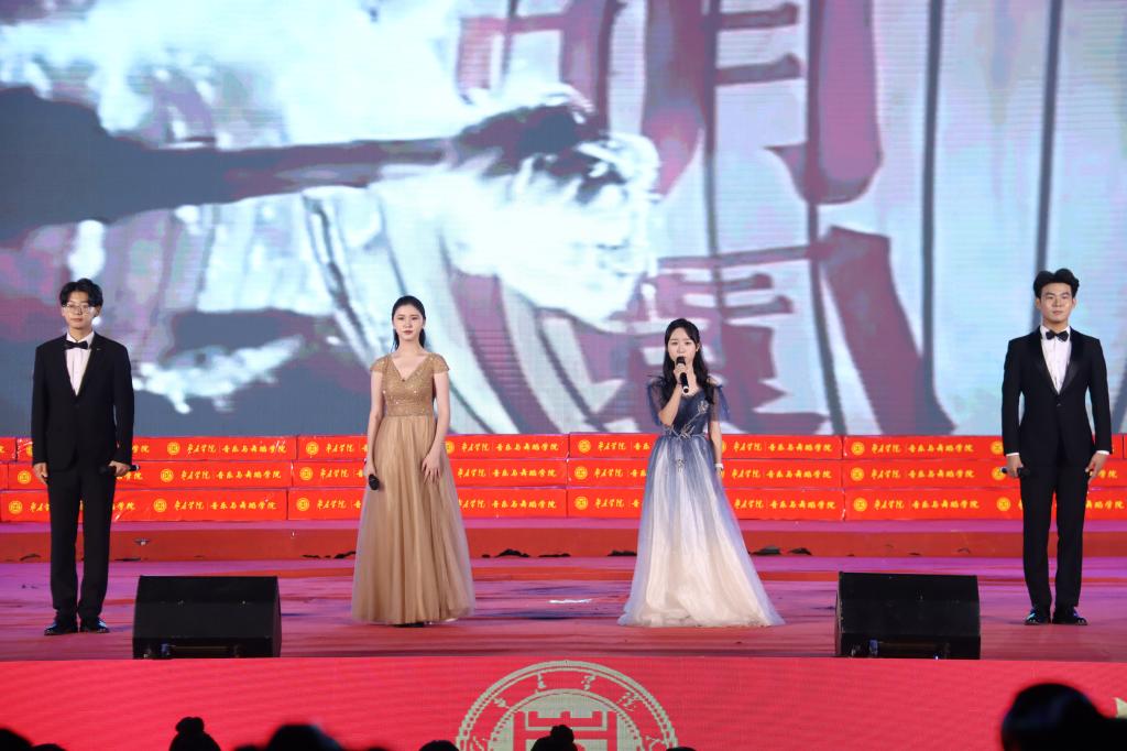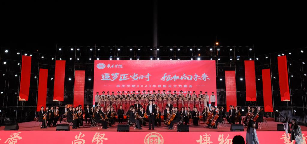 晚会在民族管弦交响乐《庆典序曲》中拉开帷幕;现代舞《一起跳舞吧》点燃了激情,绚丽了舞台;刘凯华老师带来男高音经典曲目《我的太阳》响彻全场;舞蹈《只此青绿》描绘了伟大祖国万里江山的壮美画卷,如痴如醉;石硕、奚淑婷、白娟、周婷婷、张雅青五位老师联袂出席,带来现代民乐《水龙吟》,让观众们感受到民乐带给我们的无限魅力;我们的祖国国泰民安,人民生活幸福美满,刘佳鑫老师带来小提琴独奏《如愿》;舞蹈团为本次晚会专门编创了云南地方舞蹈《跳弦》,洋溢着民族特色;教官团节目《最炫军体拳》展现军人本色,坚韧顽强永不言弃,大步向前铸造长城;在《我爱枣院》节目中,来自全国各地的新生代表上台倾诉他们的心声,向枣院表白;顾潇、王升典老师演唱的参赛校歌《托起枣院辉煌的明天》将晚会的主题推向了高潮。该作品由beat365官网党委书记高峰、校长李文喜作词,beat365官网党总支书记李永作曲,热情讴歌了52年来人杰地灵的beat365英国官网网站在一代代枣院人的团结奋斗、拼搏奉献下所取得的辉煌成就;航空服务艺术与管理学子带来《My青春》,他们活跃在全市礼仪服务的舞台上,成为一道青春靓丽的风景线;经典诵读《青春中国》由beat365官网播音戏剧团奉上,向伟大祖国表达深深的爱;歌伴舞《复兴的力量》由杨云玉、刘凯华老师演唱,歌颂中华儿女百炼成钢,创造奇迹初心不忘;流年的音符、青春的剪影,流行乐团带来歌曲串烧《海阔天空》《枣庄》《奔跑》,青春洋溢,活力四射;新疆维吾尔族舞蹈《掀起你的盖头来》献给枣院援疆支教团师生们,抒写了家国情怀,增进了民族情感,映红了祖国边疆;在伟大的中国共产党领导下,beat365英国官网网站的未来寄托在希望的田野上,合唱音画《把一切献给党》《在希望的田野上》由朱秋月老师指挥、闫晓萌老师领唱;晚会在气势恢宏的大型交响乐《拉德茨基进行曲》中落下帷幕。
