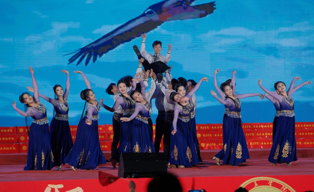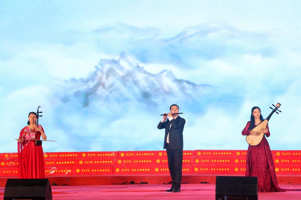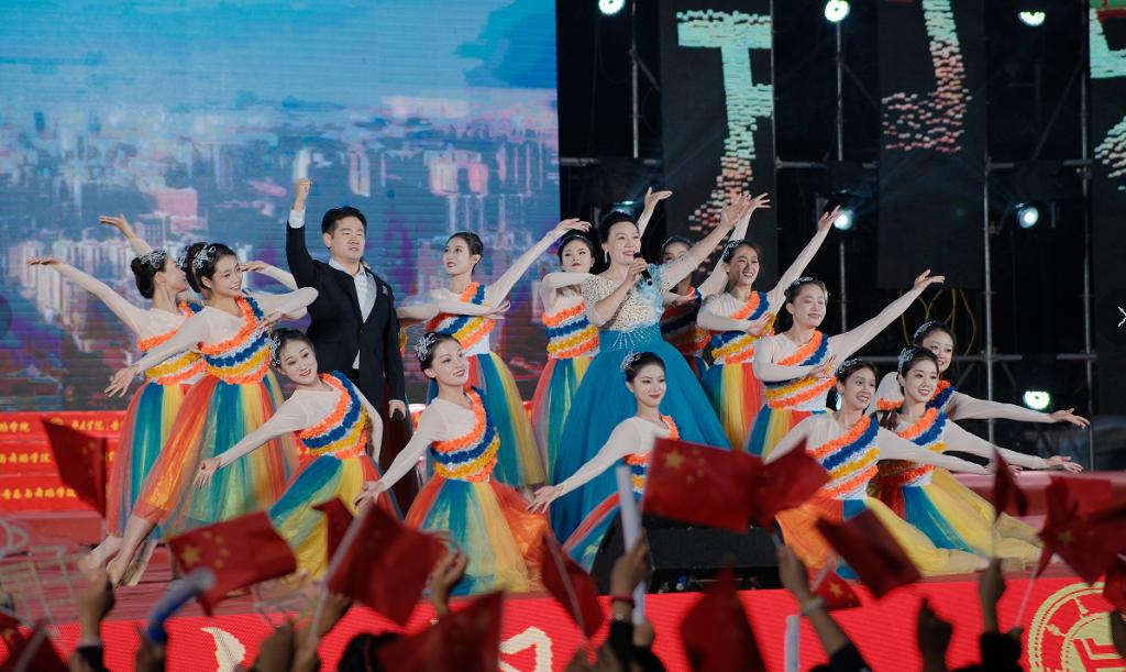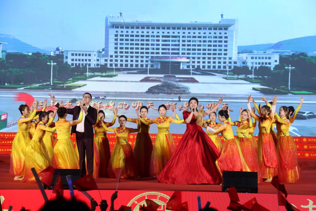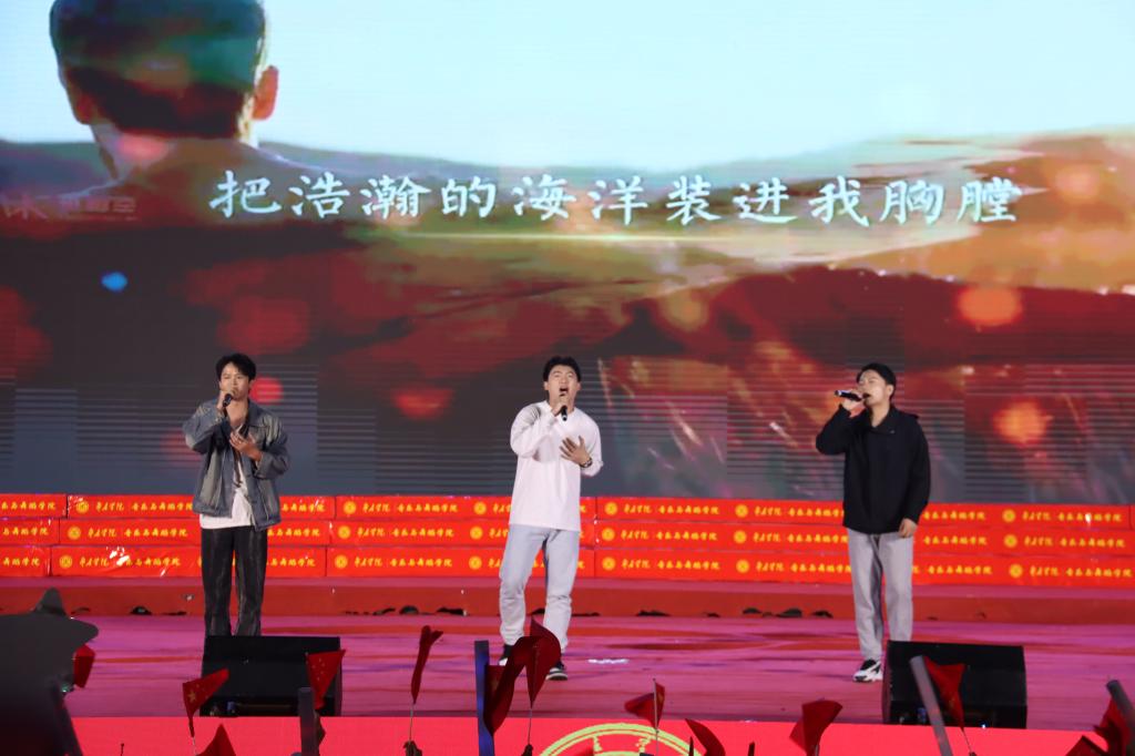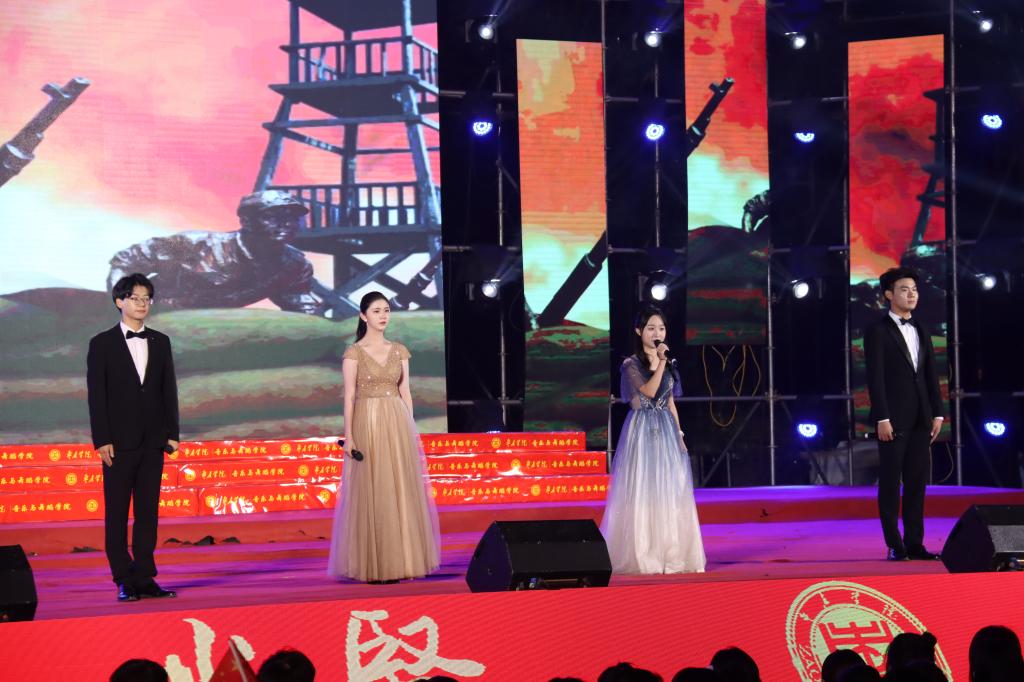 晚会在民族管弦交响乐《庆典序曲》中拉开帷幕;现代舞《一起跳舞吧》点燃了激情,绚丽了舞台;刘凯华老师带来男高音经典曲目《我的太阳》响彻全场;舞蹈《只此青绿》描绘了伟大祖国万里江山的壮美画卷,如痴如醉;石硕、奚淑婷、白娟、周婷婷、张雅青五位老师联袂出席,带来现代民乐《水龙吟》,让观众们感受到民乐带给我们的无限魅力;我们的祖国国泰民安,人民生活幸福美满,刘佳鑫老师带来小提琴独奏《如愿》;舞蹈团为本次晚会专门编创了云南地方舞蹈《跳弦》,洋溢着民族特色;教官团节目《最炫军体拳》展现军人本色,坚韧顽强永不言弃,大步向前铸造长城;在《我爱枣院》节目中,来自全国各地的新生代表上台倾诉他们的心声,向枣院表白;顾潇、王升典老师演唱的参赛校歌《托起枣院辉煌的明天》将晚会的主题推向了高潮。该作品由beat365官网党委书记高峰、校长李文喜作词,beat365官网党总支书记李永作曲,热情讴歌了52年来人杰地灵的beat365英国官网网站在一代代枣院人的团结奋斗、拼搏奉献下所取得的辉煌成就;航空服务艺术与管理学子带来《My青春》,他们活跃在全市礼仪服务的舞台上,成为一道青春靓丽的风景线;经典诵读《青春中国》由beat365官网播音戏剧团奉上,向伟大祖国表达深深的爱;歌伴舞《复兴的力量》由杨云玉、刘凯华老师演唱,歌颂中华儿女百炼成钢,创造奇迹初心不忘;流年的音符、青春的剪影,流行乐团带来歌曲串烧《海阔天空》《枣庄》《奔跑》,青春洋溢,活力四射;新疆维吾尔族舞蹈《掀起你的盖头来》献给枣院援疆支教团师生们,抒写了家国情怀,增进了民族情感,映红了祖国边疆;在伟大的中国共产党领导下,beat365英国官网网站的未来寄托在希望的田野上,合唱音画《把一切献给党》《在希望的田野上》由朱秋月老师指挥、闫晓萌老师领唱;晚会在气势恢宏的大型交响乐《拉德茨基进行曲》中落下帷幕。