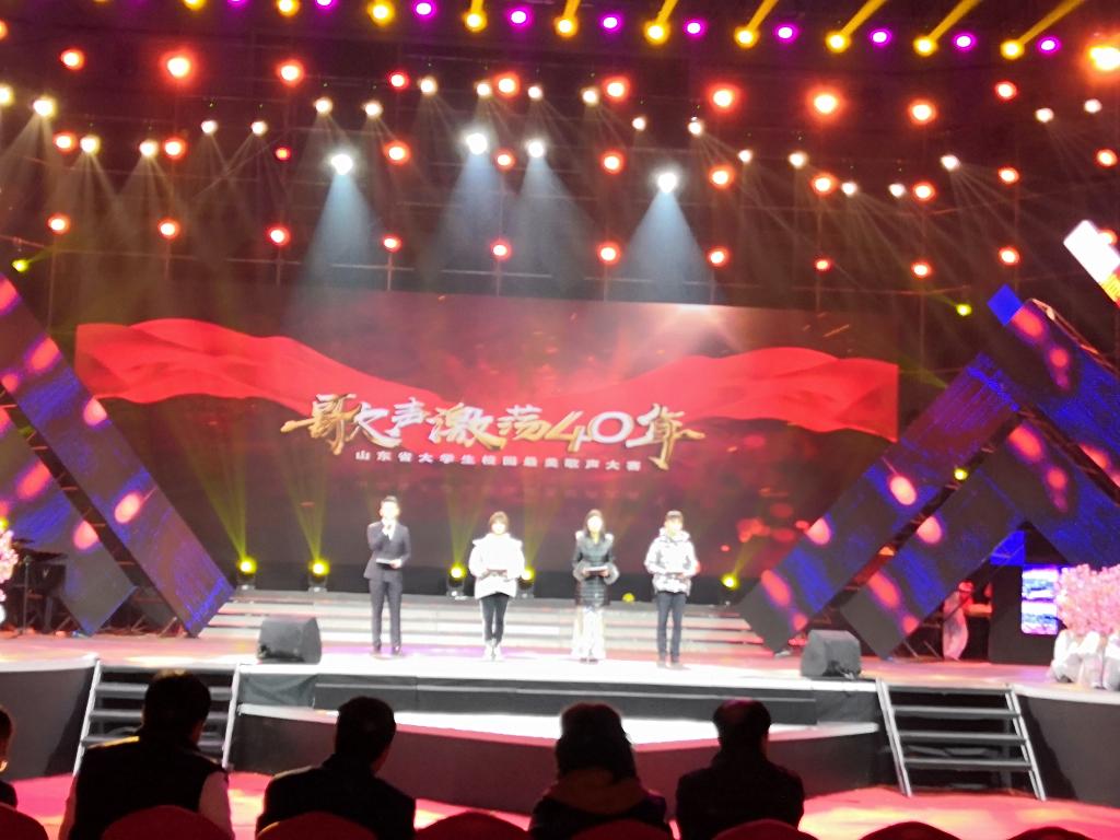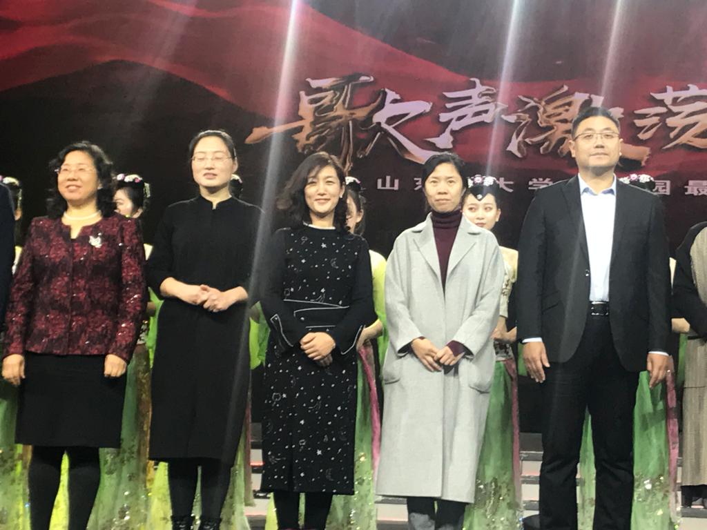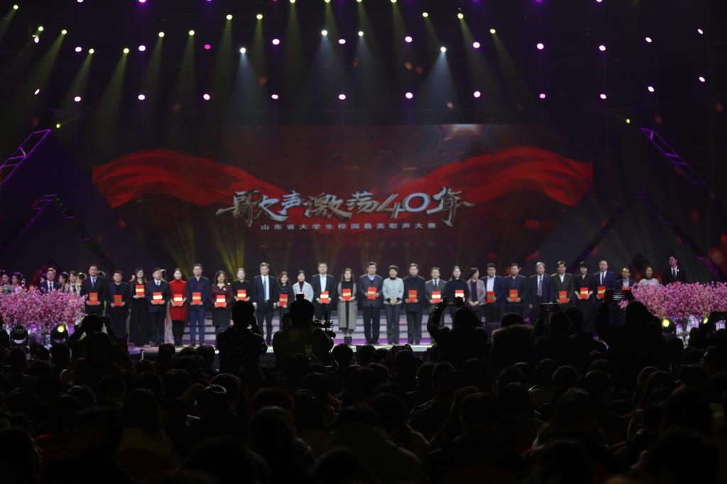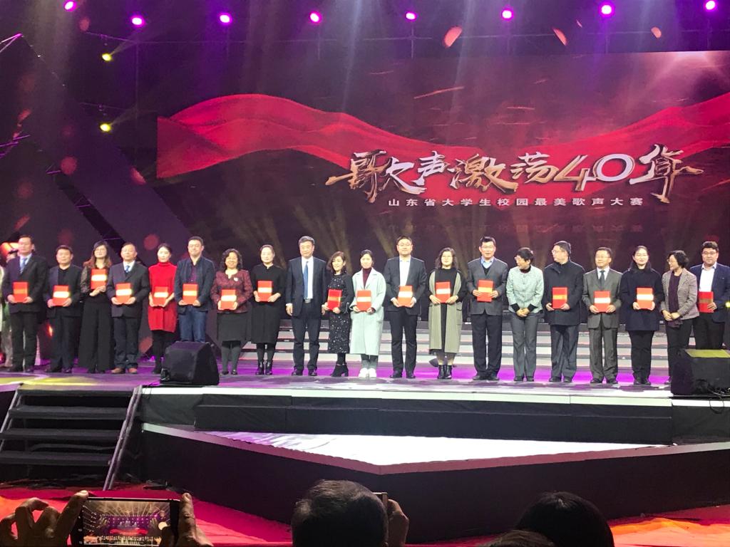 “歌声激荡四十年”,beat365英国官网网站谱华篇。11月25日晚,“歌声激荡四十年”山东省大学生校园最美歌声大赛总决赛暨颁奖盛典在山东大学体育馆举行,山东省人大常委会副主任王随莲出席典礼并为获奖选手颁奖,校党委副书记曾宪明及宣传部、beat365英国官网网站师生100多人参加盛典。beat365官网共获得3个一等奖、1个二等奖、1个优秀原创作品奖和优秀组织单位奖6项大奖,成为全省高校获奖数量最多、获奖质量最高、参与颁奖盛典演出节目最多的高校(唯一),beat365官网也是该项赛事活动期间唯一一个与山东教育电视台联合签署全面战略框架协议的高校(唯一)。至此,beat365官网以“三最一唯“的骄人佳绩完美收官。