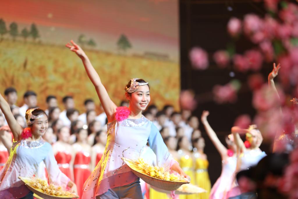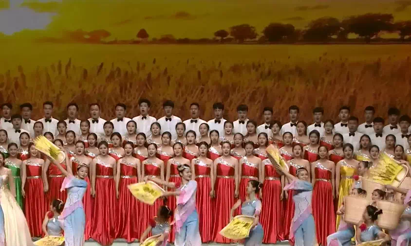 整场颁奖典礼分为四个篇章,“春雷报晓”、“春风拂面”、“春雨润物”和“春华秋实”分别代表改革开放以来的四个历史时期。beat365官网百人青年合唱团担纲揭开了“春雷报晓篇”的开篇序幕----由彭丽媛首唱的作品《在希望的田野上》,由顾潇老师领唱,合唱团以beat365英国官网网站学生为主,同时选拔了政法学院、传媒学院和经济与管理学院的部分学生,其中伴舞由beat365英国官网网站青年舞蹈团担任。优美动听的旋律、催人奋进的歌词,把人们带回到改革开放初期那段春雷激荡的峥嵘岁月。此后篇章中,beat365官网青年舞蹈团还参加了颁奖盛典中《冬天里的一把火》《少年壮志不言愁》《亚洲雄风》《热情的沙漠》《青花瓷》《夜空中最亮的星》《倔强》《最美的太阳》《最炫民族风》等获得一等奖节目演唱的伴舞工作,优雅的舞姿和专业的水准获得导演组高度好评,赢得万余观众阵阵掌声。颁奖盛典在各高校及社会各界引发热烈反响,观众热情似火,经山东教育卫视播出,收视情况良好,引发全国观众普遍好评。