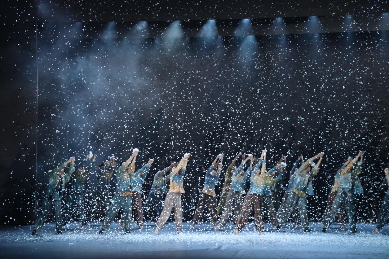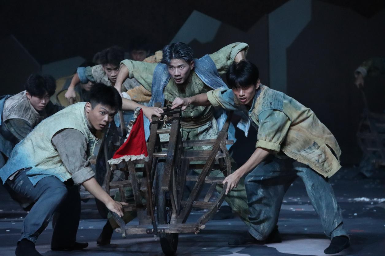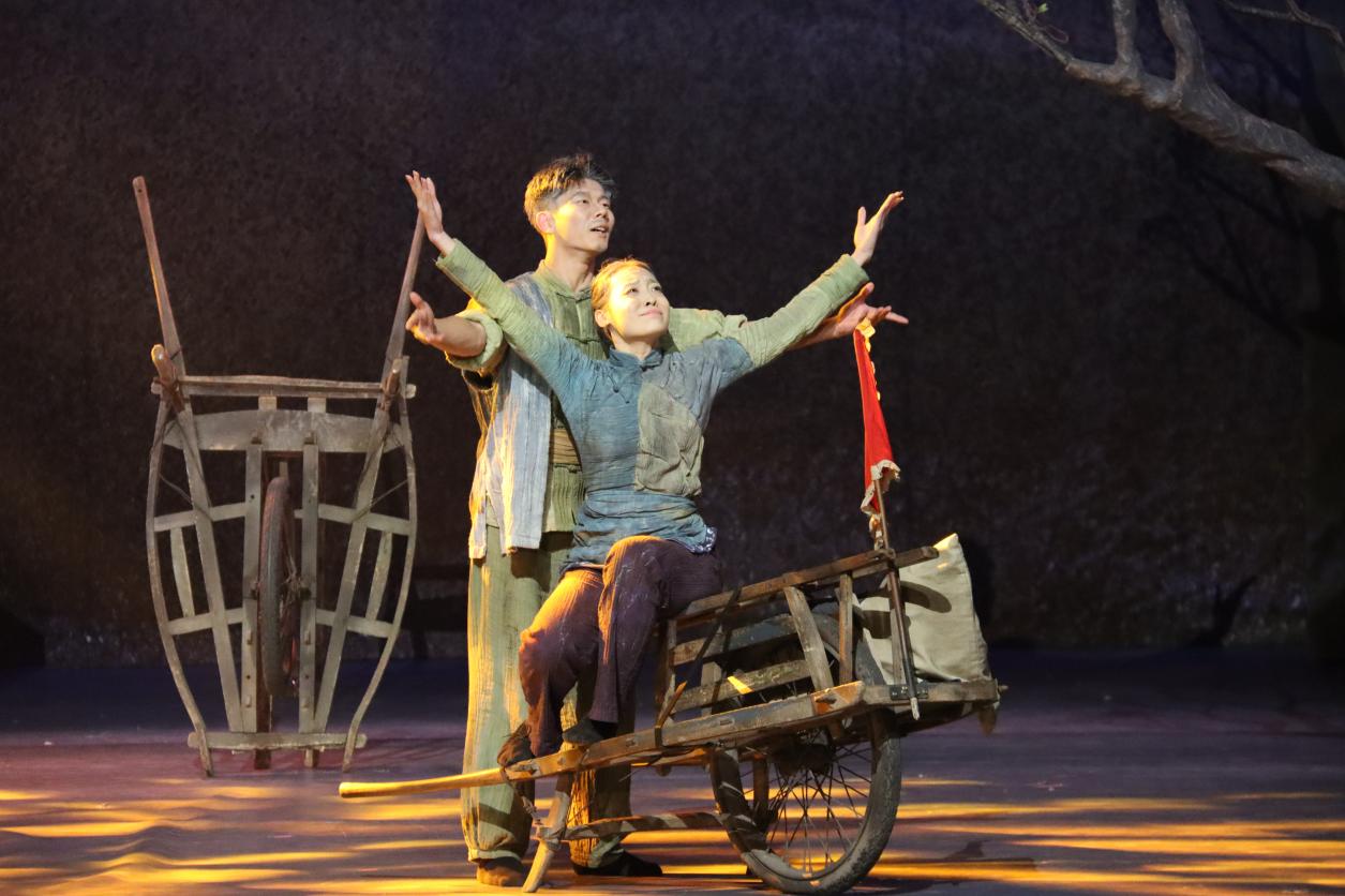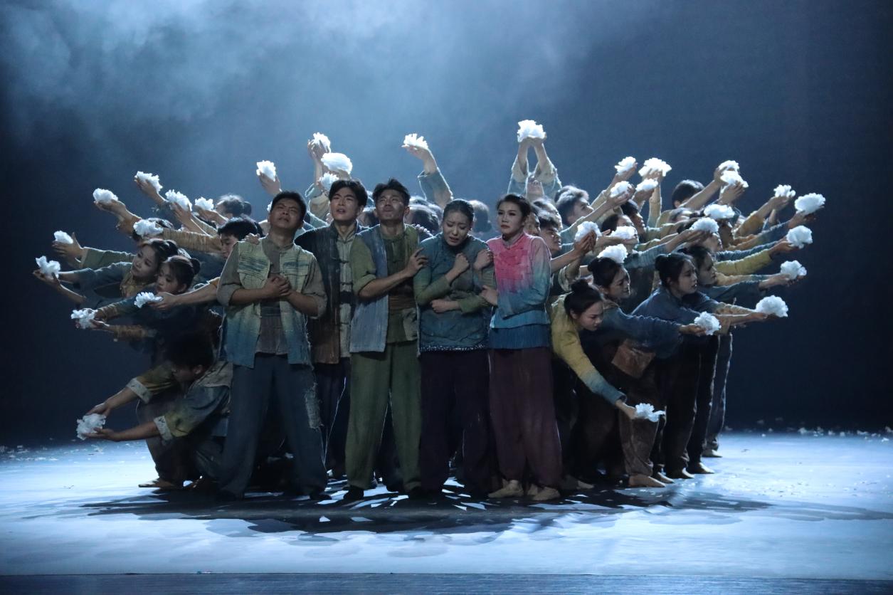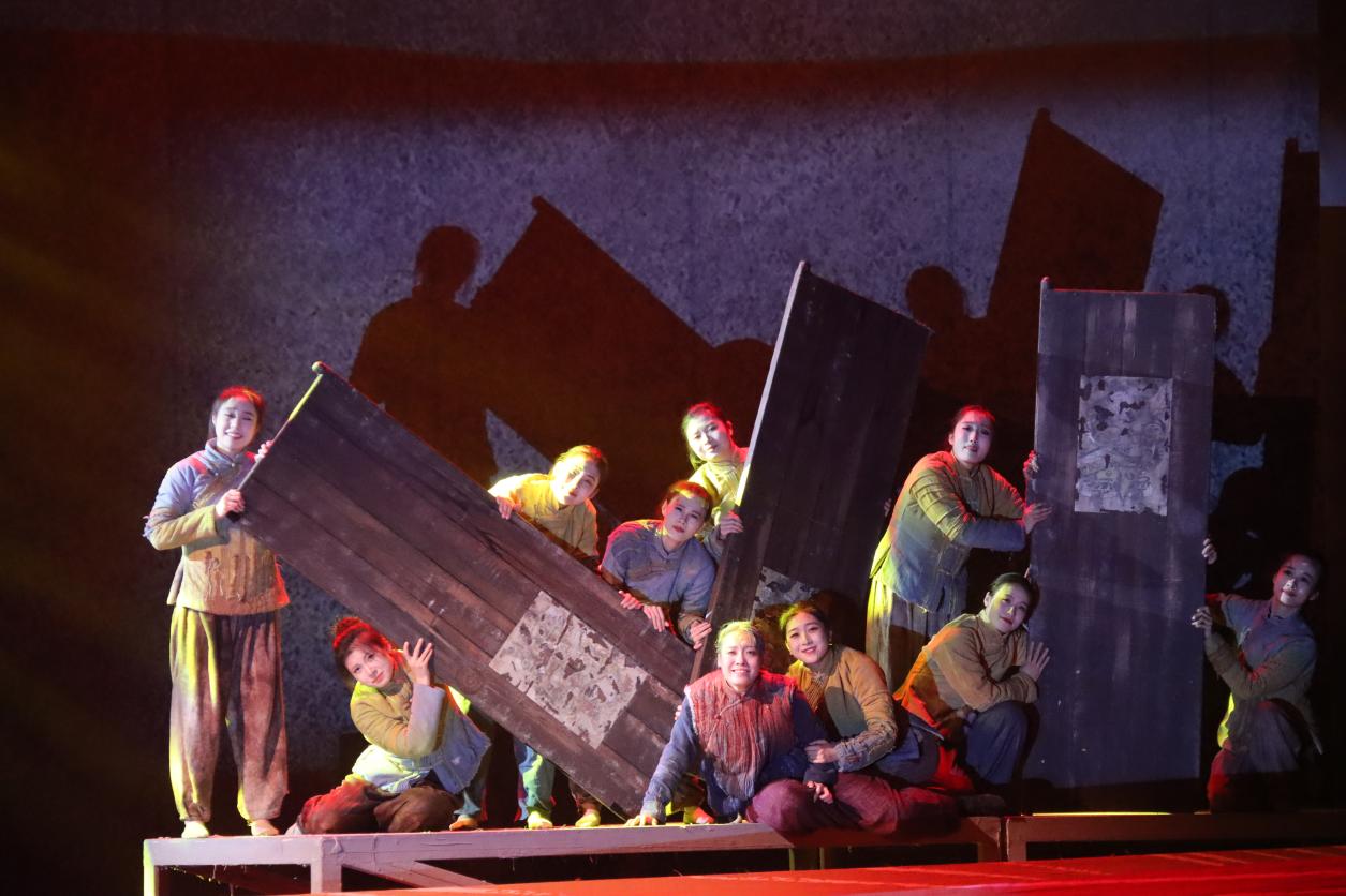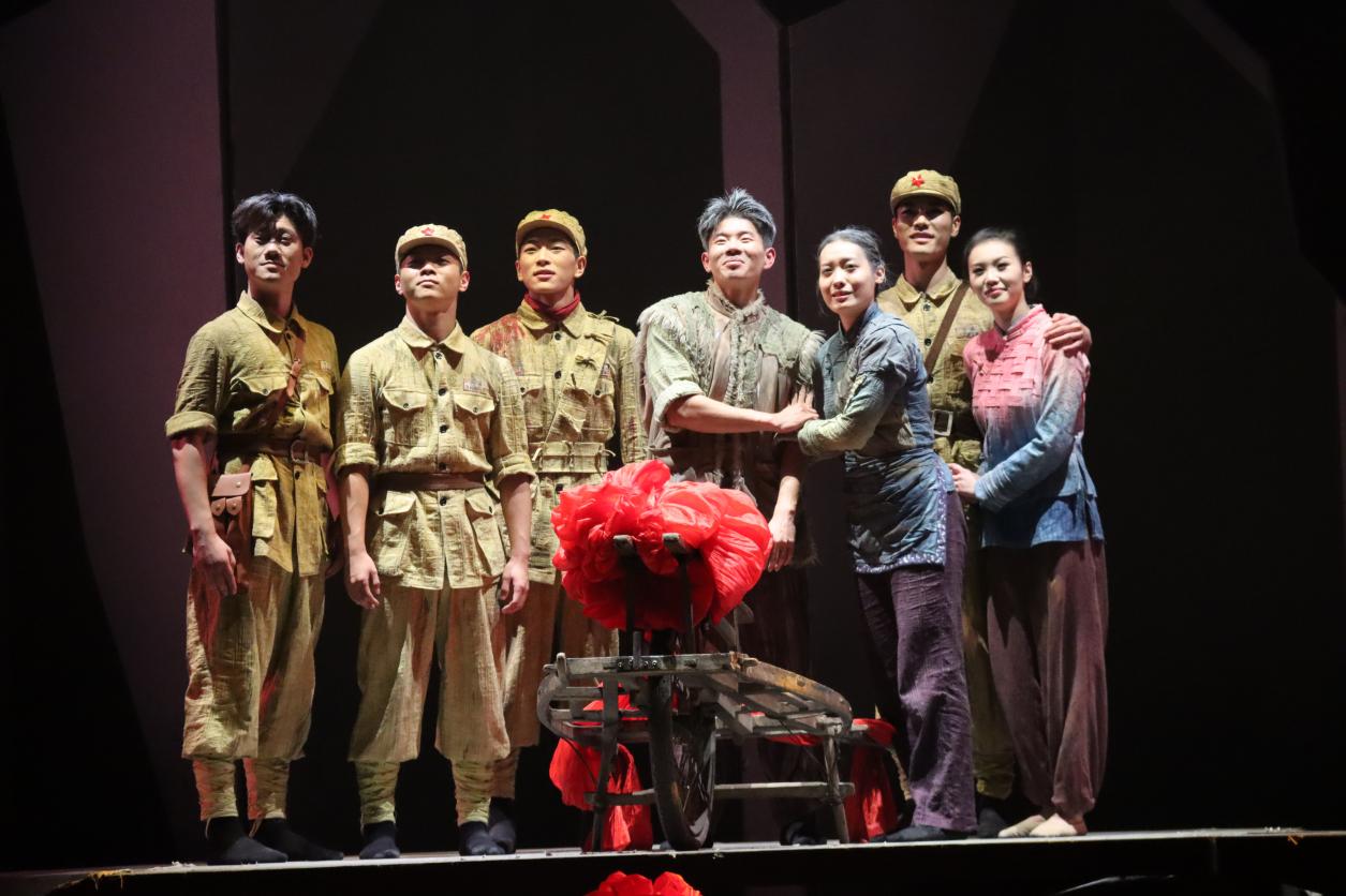 舞剧《沂蒙长风》以沂蒙革命老区的真实历史为根基,以刘永良一家人的感人故事为原型,巧妙融合李桂芳、梁怀玉等沂蒙英模的典型事迹,生动讲述了革命战争年代沂蒙人民义无反顾支援前线、舍生忘死奉献家国的动人篇章。作品紧扣“一门三烈士”“火线桥”等震撼人心的历史事件,以“推车支前”为主线,用灵动而富有力量的舞蹈语言,深刻诠释了“党群同心、军民情深、水乳交融、生死与共”的沂蒙精神内核。全剧精心设计序《风光》、四幕《风云》《风烟》《风涛》《风华》及尾声《长风》的完整结构,创新采用回旋曲式与“多线并进”的叙事手法,将“独轮车”、“纺车”等承载着厚重历史的革命文物转化为鲜明的舞台意象,让观众在肢体艺术的流转中,直观感受信仰的温度与情感的共鸣。演出中,灯光、舞美与多媒体影像的巧妙融合,既营造出战争年代的宏阔背景,又细腻勾勒出人物的情感世界,打造出沉浸式的观演空间,让红色文化的崇高感与震撼力直抵人心。