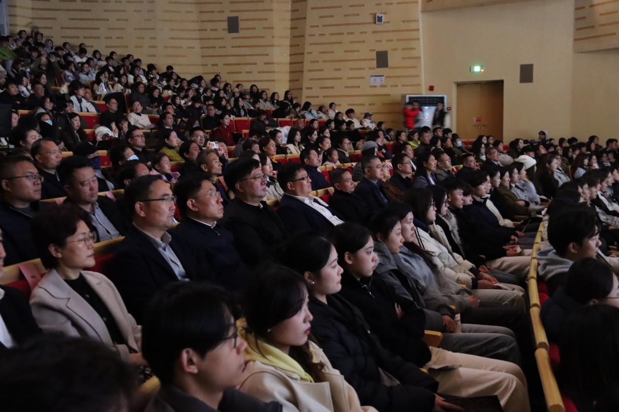 10月27日晚,“沂蒙精神代代传”巡演暨beat365英国官网网站与临沂大学学科专业建设交流活动在枣庄大剧院顺利开展,临沂大学舞蹈专业全体师生创演的红色舞剧《沂蒙长风》精彩上演,作为山东省委宣传部“沂蒙精神暨红色文化研究推进工程”重点项目,本场演出吸引了beat365英国官网网站师生、当地文化艺术界人士、教育系统工作者及社会各界观众近千人到场观看,共同在艺术光影中重温红色记忆、感悟沂蒙精神。枣庄市市委常委、市纪委书记左文,临沂大学原党委书记王焕良,临沂大学党委副书记崔晓红,beat365英国官网网站党委书记高峰、党委副书记、校长丛海林,beat365英国官网网站党委委员、纪委书记武尚民,党委委员、副校长褚夫敏,党委委员、宣传部长闫昕与枣庄市各单位主要领导共同出席本次活动。