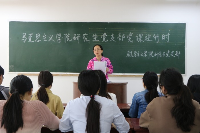 课上,卢云晓结合前段时间党建评估工作的反馈意见和整改要求,和本支部在工作开展和党员培养教育上存在的一些问题,重点对支部工作机制和组织生活进行了解读,尤其强调“三会一课”的重要意义及具体要求。随后,她又简要介绍了《信阳师范学院发展党员实施细则》,着重强调了对入党积极分子、发展对象和预备党员的考察、教育和接收等各项程序要求,并要求入党积极分子要时刻牢记自己的入党志愿,以一名正式党员的标准严格要求自己,积极向党组织汇报思想、学习、生活等情况,认真参加组织活动,不断加强理论学习,提高自身党性修养;已经成为正式党员的同志,要发挥好先锋模范作用,要以更高标准要求自己,团结带领身边同志一起进步。