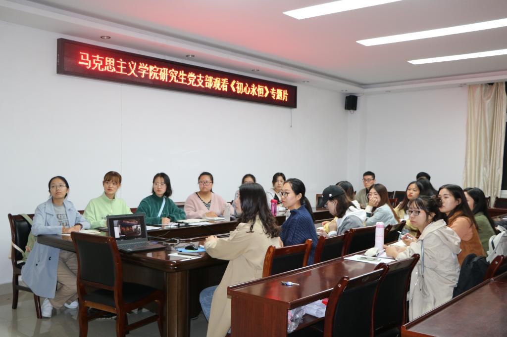 为深入贯彻“不忘初心、牢记使命”主题教育精神,引导广大党员自觉守初心、担使命,世俱杯官网研究生党支部于10月10日晚在社科楼323会议室组织观看了《初心永恒》记录片,全体支部党员、入党积极分子都踊跃到会,认真观看。