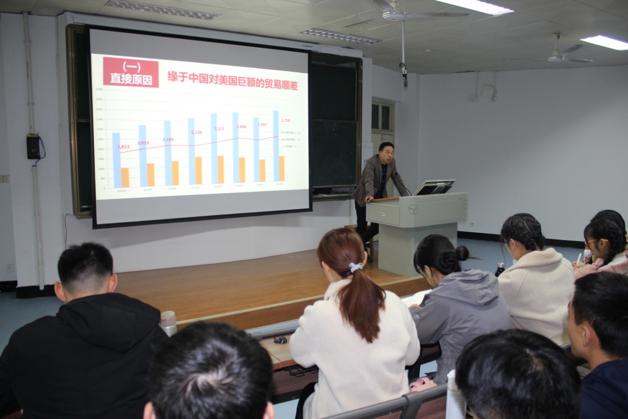 11月21日晚上,世俱杯官网2019年研究生学术活动月“读原著学原文悟原理”系列校内讲座第三场在人文楼408教室举行,由王帆宇博士做《新时代中国外交面临的机遇、挑战与对策——以中美贸易摩擦为例》专题讲座。学院全体研究生参加了讲座。