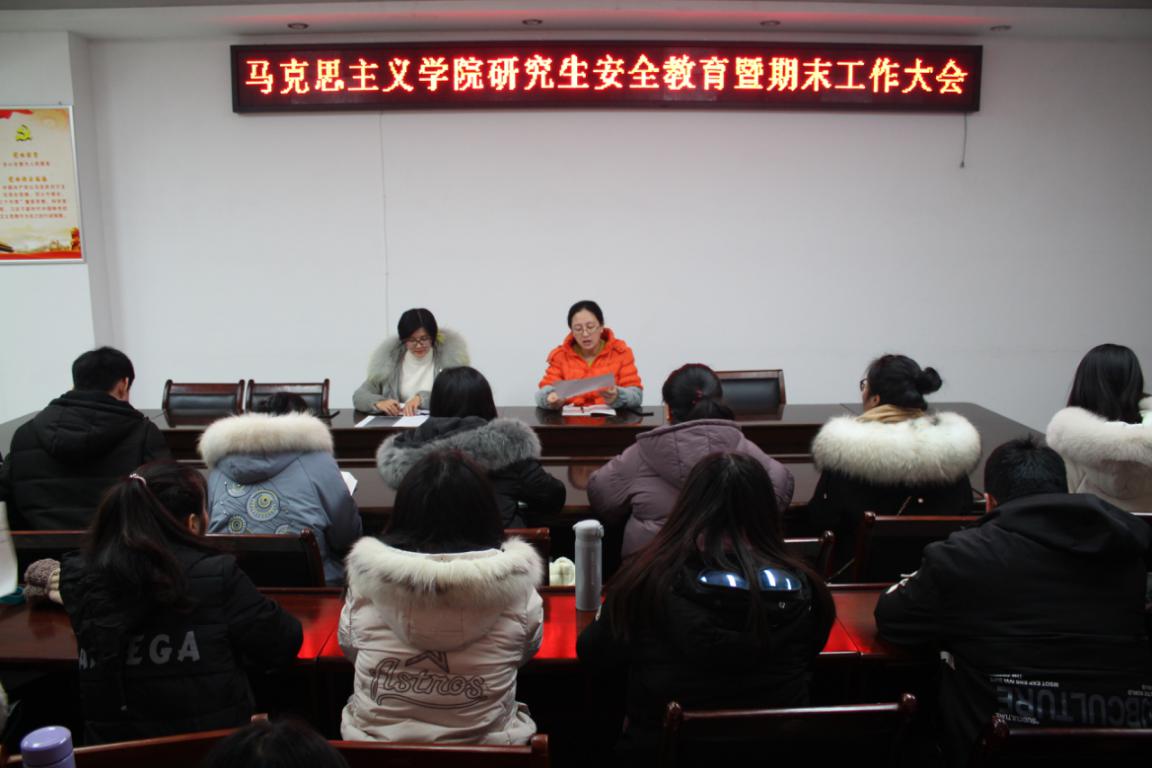 2019年12月25日,为加强研究生安全防范意识,自觉遵守校规校纪考纪,世俱杯官网在323会议室召开关于安全教育以及期末工作的会议,研究生教学秘书卢云晓和班主任郑晨霞及全体研究生参加了此次会议。