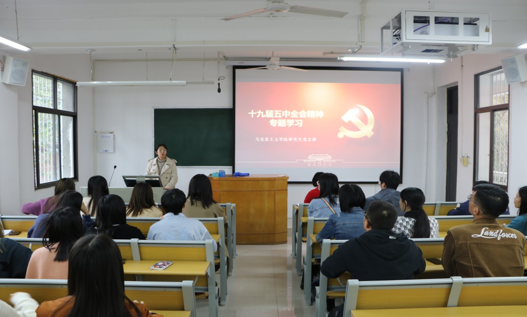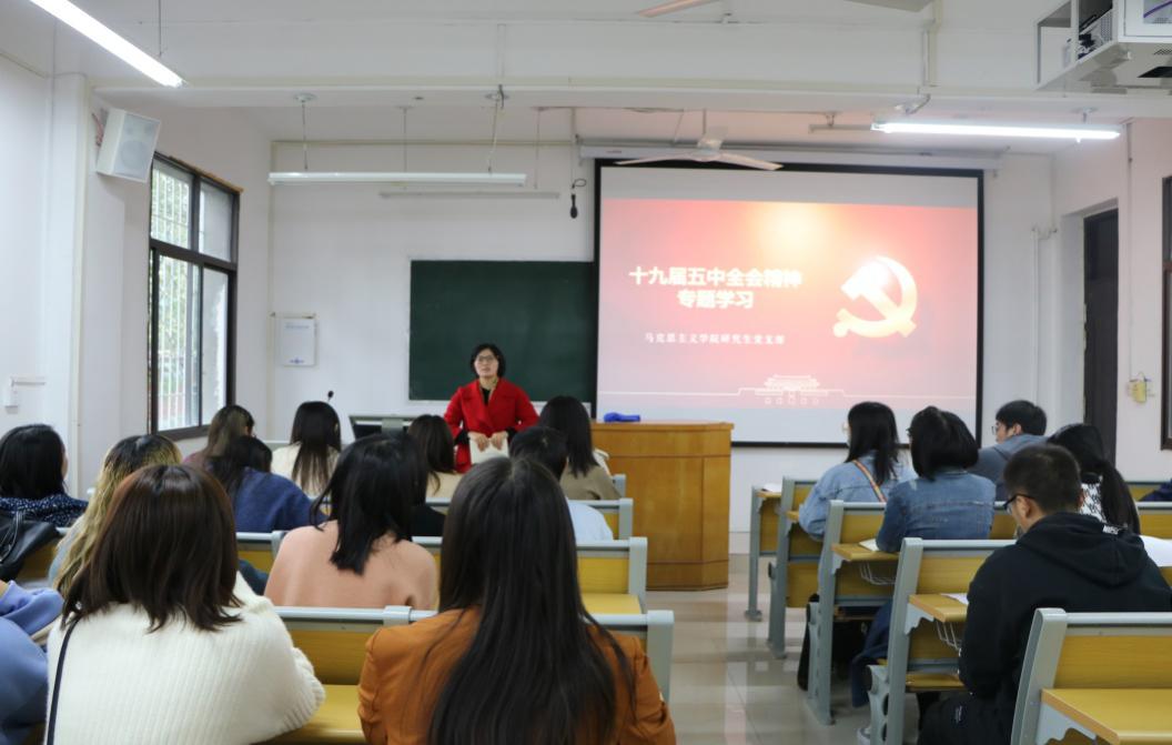 为深入贯彻落实党的十九届五中全会精神,提升党支部的政治理论学习能力,11月16日下午,世俱杯官网研究生党支部于教五楼203教室举行了十九届五中全会精神专题学习活动,支部党员积极参加。