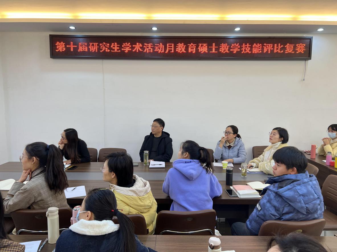 为加强世俱杯官网教育硕士的教学基本功训练,提升教学技能,展示教学风采,值研究生学术活动月期间,世俱杯官网举办了教育硕士学科教学(思政)专业教学技能大赛。11月21日与24日分别举行了初赛和复赛,初赛阶段43名学生全员参加,最终选拔4名同学进入复赛。复赛由卢云晓主持,程晋富等领导老师出席,全体教育硕士生到场观摩。