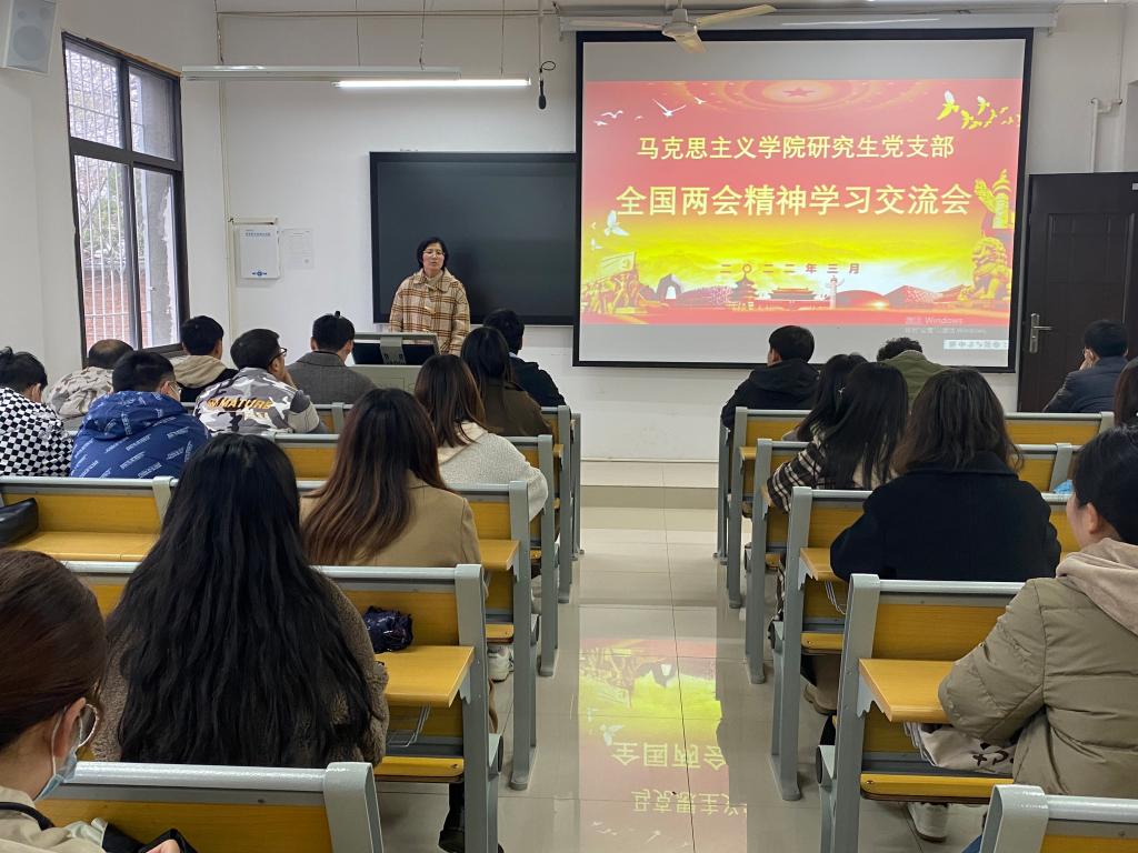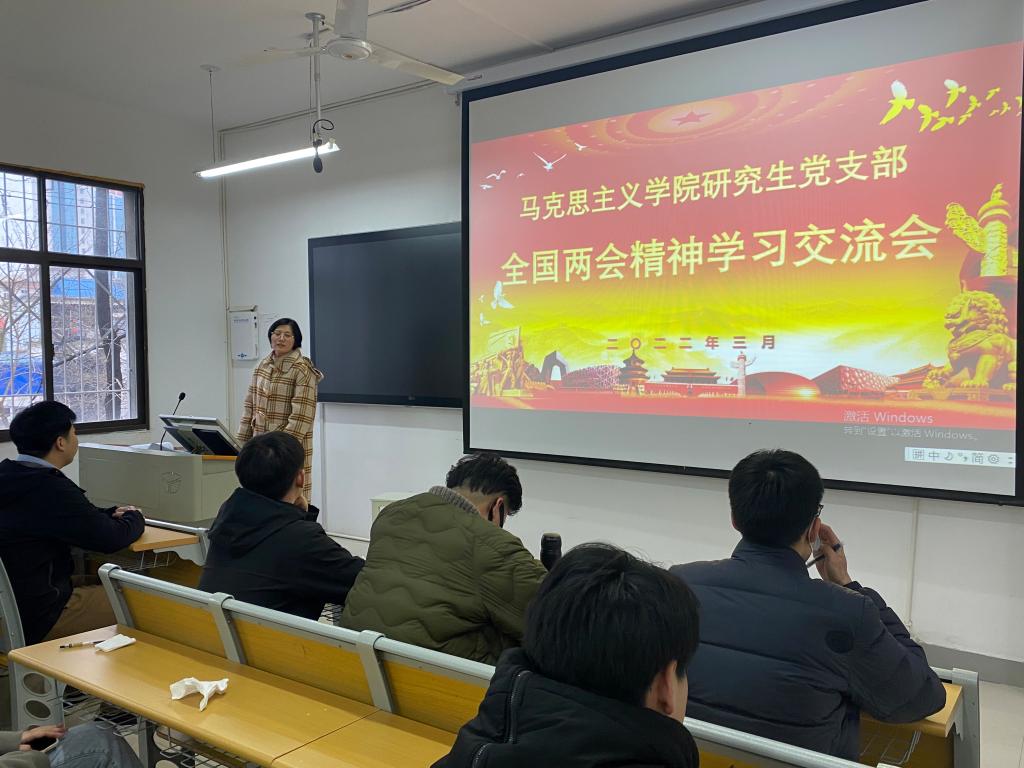 为深入学习贯彻2022年全国两会会议精神,提高世俱杯官网研究生党员的政治素养和知识素养,增强把“两个确立”转化为坚决做到“两个维护”的思想自觉、政治自觉、行动自觉,3月18日,世俱杯官网研究生党支部组织支部党员于教学楼五楼203教室开展全国两会精神学习交流会。会议由支部书记郑晨霞主持。