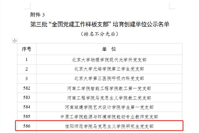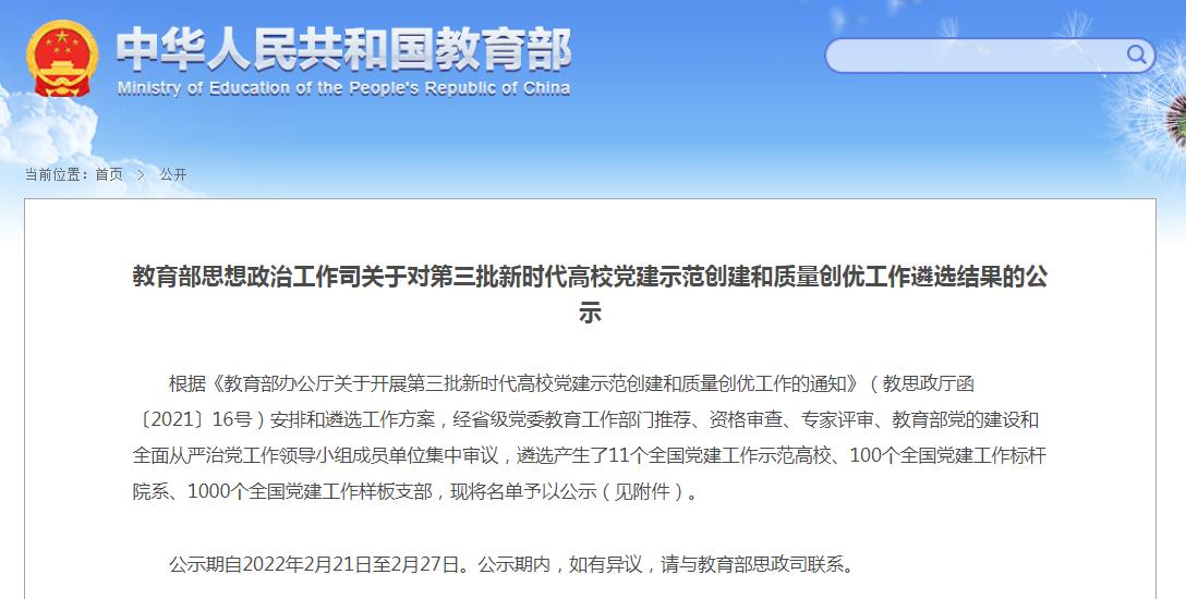 近日,根据《教育部思想政治工作司关于对第三批新时代高校党建示范创建和质量创优工作遴选结果的公示》,我校sjb世俱杯网站研究生党支部获批 “第三批全国党建工作样板支部”培育创建单位。