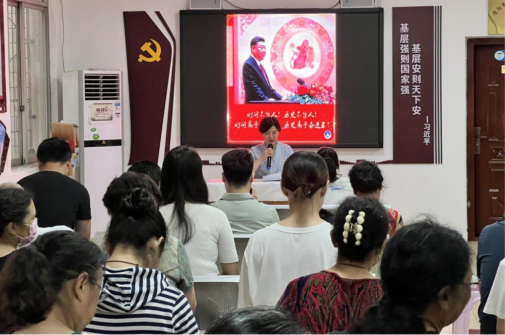 为深入学习贯彻习近平总书记系列讲话精神,提升党员同志的思想觉悟和党性修养,以良好的精神面貌迎接党的二十大胜利召开,在“七一”来临之际,世俱杯官网研究生党支部书记郑晨霞和支部党员鲁桐君、汤欢一同赴华森社区开展了习近平金句宣讲活动。