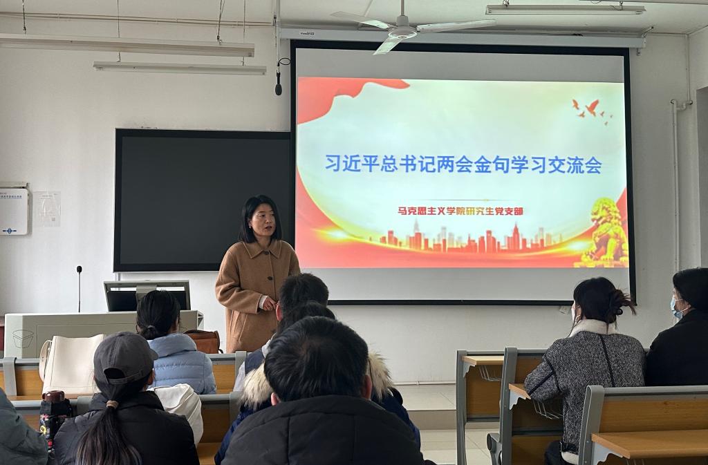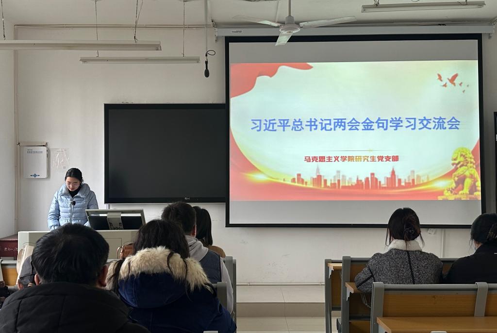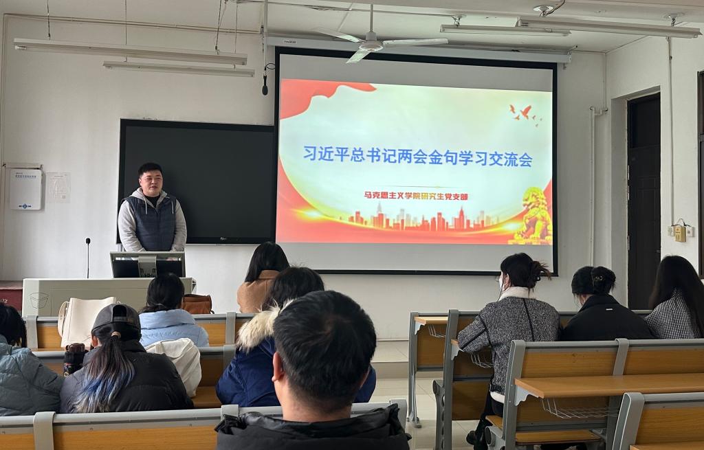 为传达学习贯彻习近平总书记在全国两会上的重要讲话和全国两会精神,深入交流学习体会,世俱杯官网研究生党支部于3月21日下午在教五楼203开展了集体学习交流会,会议由支部副书记朱海军同志主持。