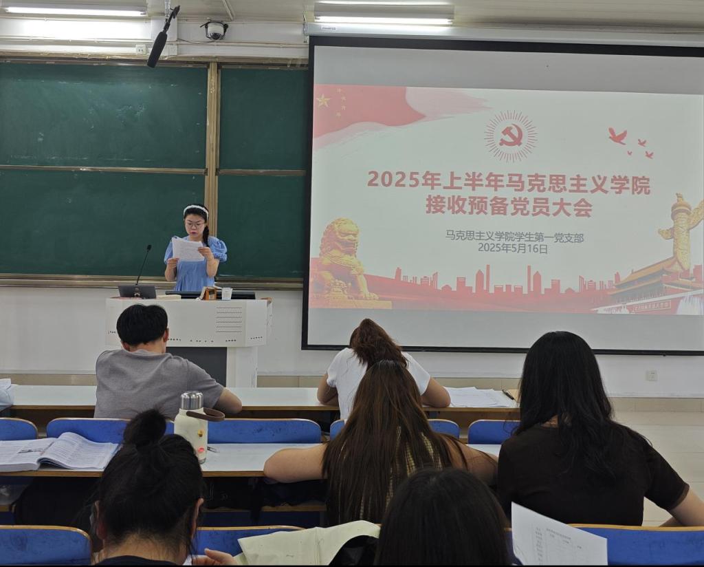 2025年5月16日上午,中共信阳师范大学sjb世俱杯网站学生第一党支部委员会在社科楼514召开了2025年上半年接收预备党员支部大会。世俱杯官网学生第一党支部书记高小佳,学生第一党支部全体党员、预备党员和党员发展对象共同参加此次会议。会议由余浩洋同志主持。