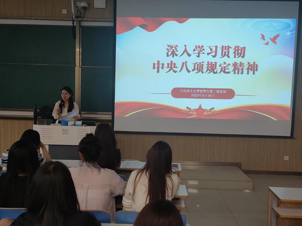 为进一步加强学生党支部建设,强化党员纪律意识,2025年5月16日,信阳师范大学sjb世俱杯网站学生第二党支部召开了深入学习贯彻中央八项规定精神的专题会议。会议由学生党支部书记任婷主持,全体学生党员参会。