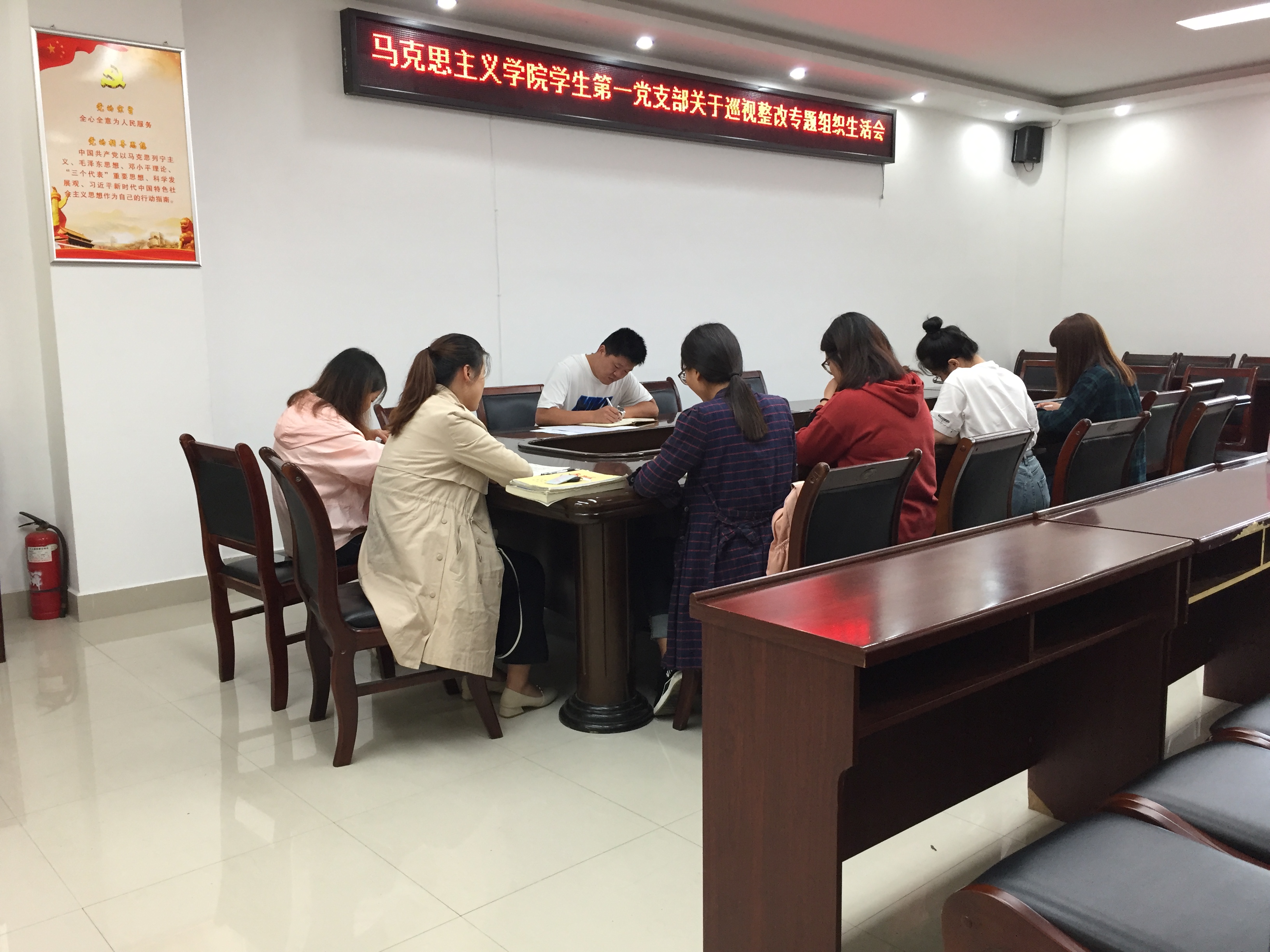 2018年9月21日下午,世俱杯官网学生第一党支部在社科楼323会议室召开巡视整改专题组织生活会,支部全体党员和预备党员参加会议。会议由学生第一党支部书记孙绪曙同志主持。
