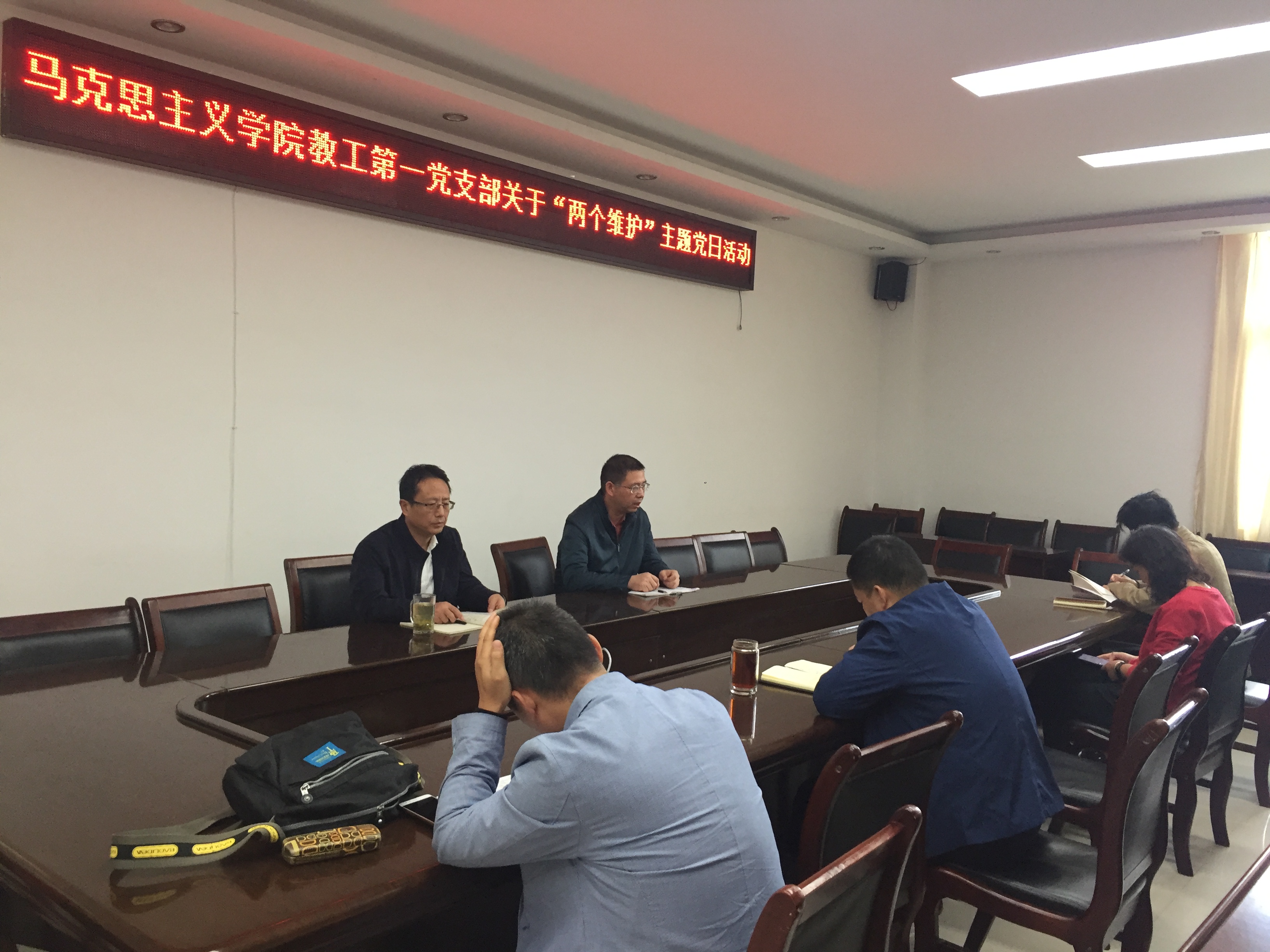 10月18日下午,世俱杯官网教工第一党支部在323会议室召开了“两个维护”主题党日会议。党支部书记王传富同志主持了会议,支部全体成员参加。