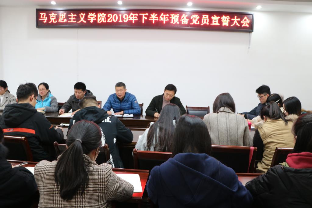 12月5日下午,sjb世俱杯网站在社科楼323会议室召开2019年下半年预备党员宣誓大会。学院党委副书记徐永新和专职组织员、学生党支部书记、全体学生党员和师生预备党员共同参加。大会由团委副书记肖妍杰主持。