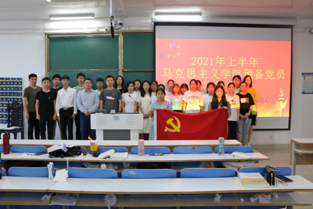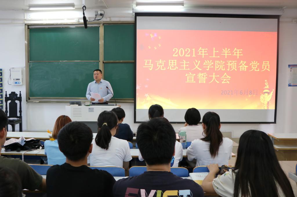 6月8日下午,世俱杯官网2021年上半年预备党员宣誓大会在社科楼514教室举行。学院党委副书记何晓坚、学生党支部书记、预备党员和部分入党积极分子共同参与此次大会。会议由预备党员王明亮主持。