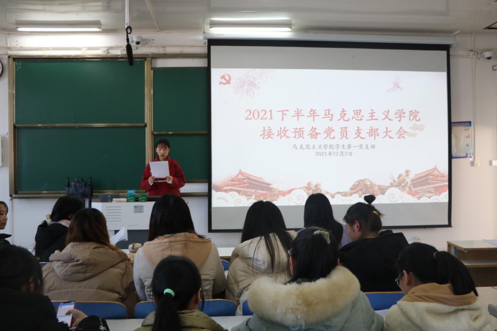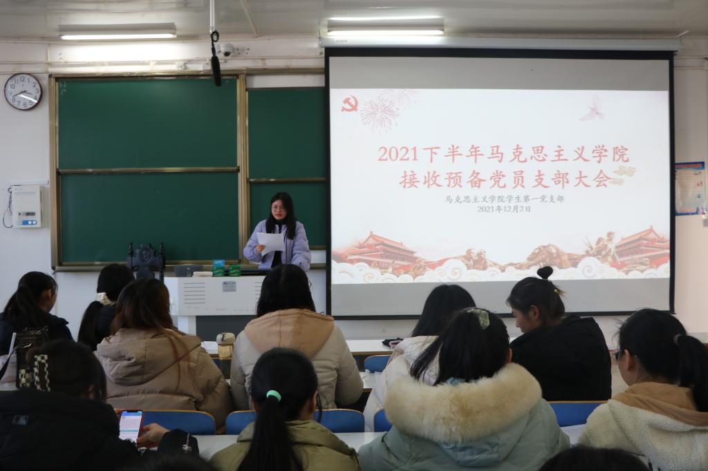 12月2日下午,sjb世俱杯网站学生第一党支部在社科楼514教室组织召开2021年下半年接收预备党员支部大会。世俱杯官网学生第一党支部正式党员杨青青、靳雨露、温玉婉、张梦丽,学生第一党支部预备党员和党员发展对象共同参加本次会议。会议由靳雨露主持。