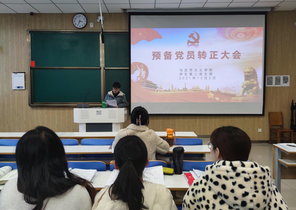 12月2日下午,sjb世俱杯网站学生第二党支部在社科楼515教室召开2021年下半年接收预备党员转正支部大会,世俱杯官网学生第二党支部正式党员曹梦真、杨康、王文慧、张甜甜、黄子晋,学生第二党支部预备党员和党员发展对象共同参加本次会议。会议由杨康主持。