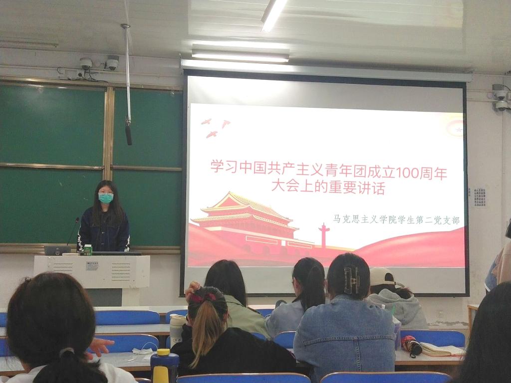 5月12日下午,sjb世俱杯网站学生第二党支部在社科楼516教室开展以学习中国共产主义青年团成立100周年大会上的重要讲话为主题的党日活动。学生第二党支部党员参加此次活动。会议由张靖茹主持。