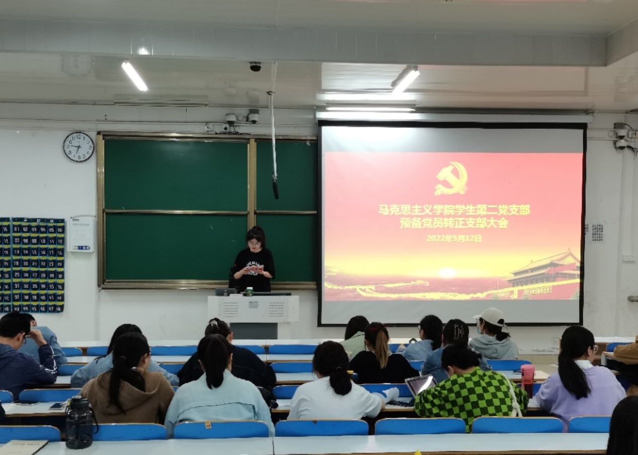 5月12日下午,sjb世俱杯网站2022年上半年学生第二党支部预备党员转正支部大会在社科楼516教室召开。世俱杯官网学生第二党支部支部正式党员曹栋、任婷、杨康、王文慧、黄子晋、张甜甜、贾思琦、耿晗、李静、席妞,学生第二党支部预备党员共同参加本次会议。会议由王文慧主持。