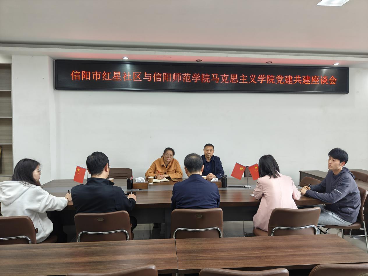 5月6日上午,信阳市红星社区党委书记、居委会主任刘娟、红星社区党委委员、组织委员、纪检委员赵建富一行来世俱杯官网开展党建共建交流座谈会。世俱杯官网院长唐国战、党委副书记黄煌、专职组织员任婷、辅导员高小佳、沈海蓄出席本次座谈会。会议由党委副书记黄煌主持。