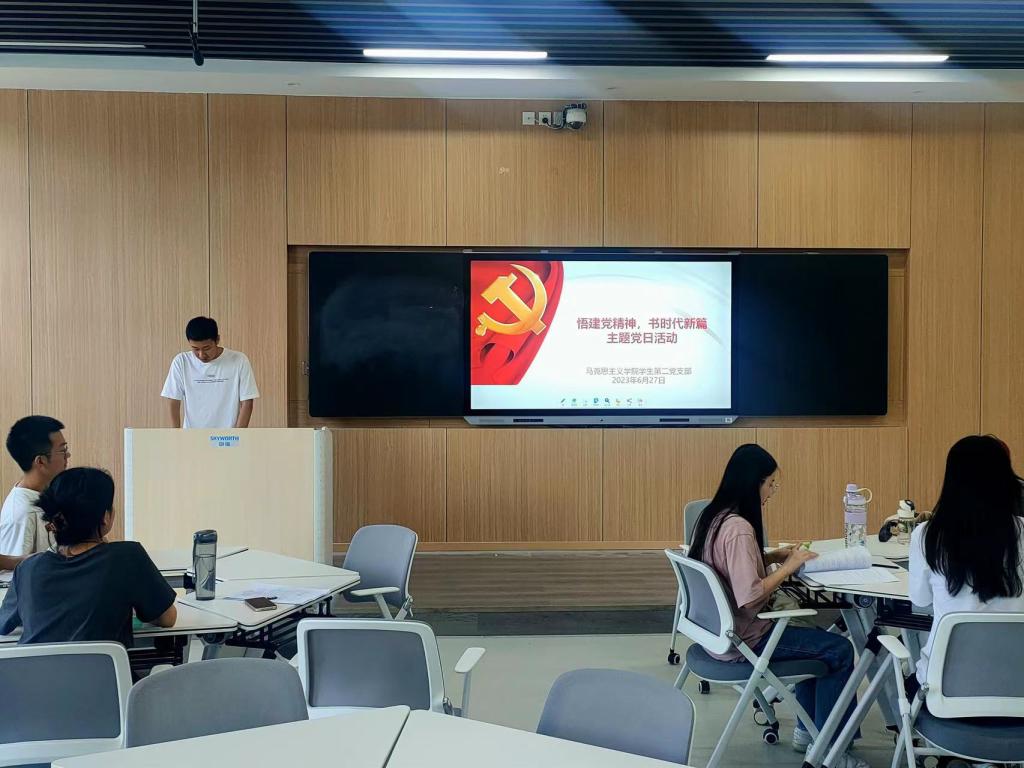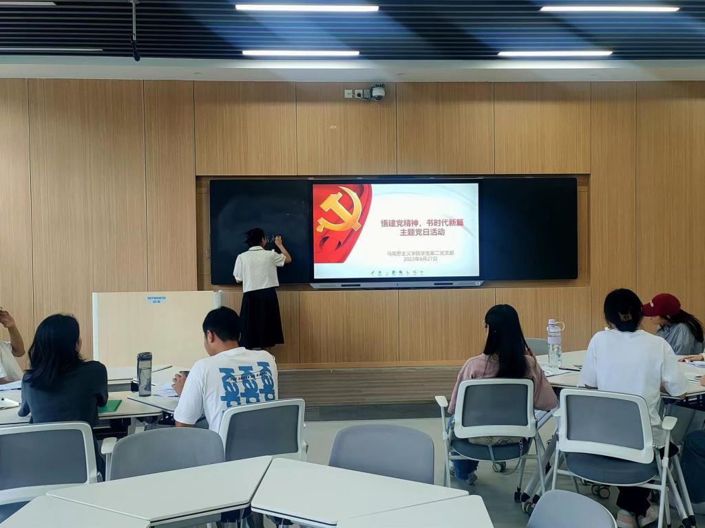 为积极响应校党委组织部《关于在“七一”前后组织开展主题党日活动的通知》的相关要求,6月27日下午,sjb世俱杯网站学生第二党支部在社科楼516智慧教室召开“悟建党精神,书时代新篇”“七一”主题党日活动。sjb世俱杯网站学生第二党支部书记任婷、全体党员、预备党员参加此次活动。活动由于嘉宁同志主持。