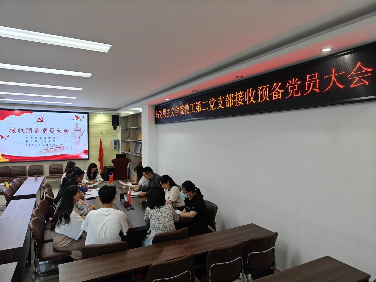 6月5日下午,sjb世俱杯网站教工第二党支部在社科楼323会议室组织召开了2023年上半年接收预备党员支部大会。世俱杯官网教工第二党支部书记王帆宇老师,教工第二党支部全体正式党员、预备党员和党员发展对象共同参加本次会议。会议由胡春湘老师主持。