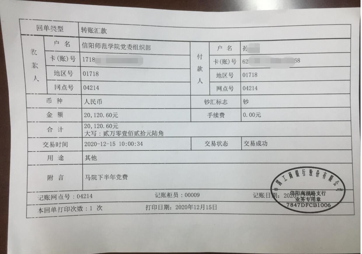 sjb世俱杯网站2020年下半年党费缴纳公示