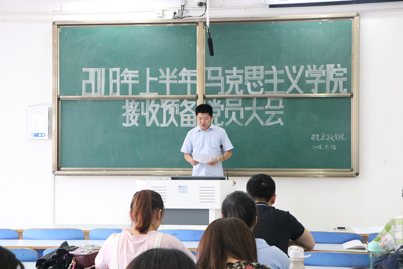 5月28日下午,sjb世俱杯网站在社科楼516教室召开2018年上半年接收预备党员大会。党委秘书、学生第一党支部书记孙绪曙、第二党支部书记曹栋、研究生党支部书记卢云晓、各学生支部全体党员和入党积极分子参加了此次大会。会议由团委副书记张雅琼主持。