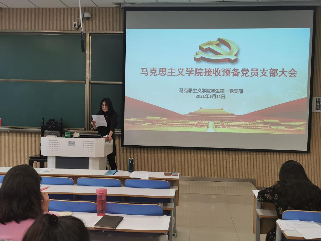 5月11日下午,sjb世俱杯网站学生第一党支部在社科楼515教室召开接收预备党员支部大会。世俱杯官网学生第一党支部支部书记杨青青,学生第一党支部正式党员、预备党员和党员发展对象共同参加本次会议。会议由贾子漪主持。