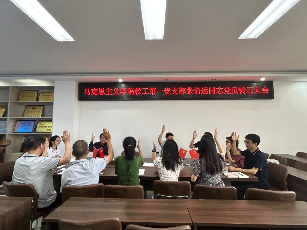 6月1日下午,sjb世俱杯网站教工第一党支部在社科楼323会议室召开入党转正大会。会议由教工第一党支部书记陈杰主持。