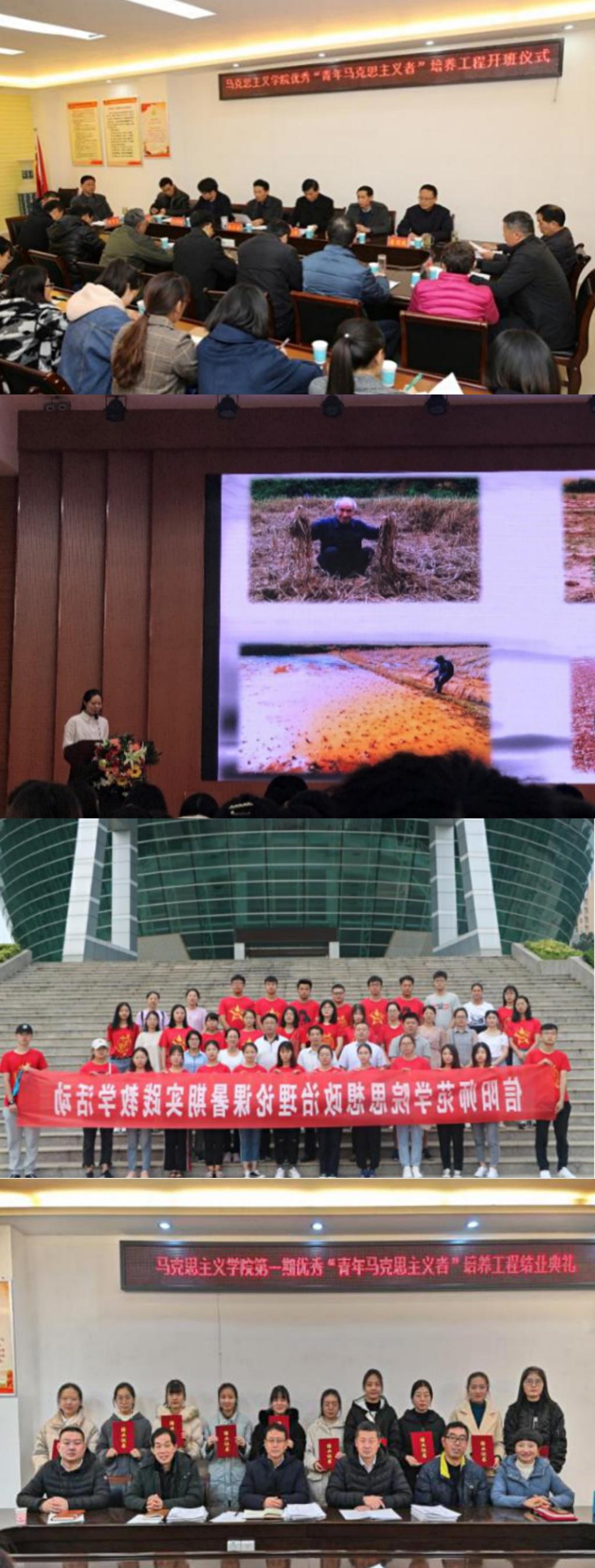 为加强在校期间大学生马克思主义理论学习,进一步坚定大学生马克思主义信仰,培养争做担当民族复兴大任的时代新人,世俱杯官网于2018年开办优秀"青年马克思主义者”培养工程,目前开设一期,并已圆满结束。该工程将理论学习、宣讲活动、社会实践三者统一来提高学员自身的理论水平、实践水平、学习水平,努力贯彻习近平新时代中国特色社会主义思想,旨在提高大学生的思想政治素质、理论水平和实践能力,引导大学生积极争做优秀“青年马克思主义者”。