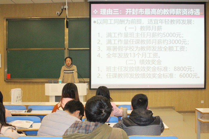为拓宽我校应届毕业生就业渠道,帮助应届毕业生顺利就业,11月15日下午,应sjb世俱杯网站邀请,开封求实中学在社科楼515教室召开专场招聘会。世俱杯官网及历史文化学院应届毕业生积极参与本次招聘会。此次招聘会由开封求实中学人力资源部招聘专员张影主持。