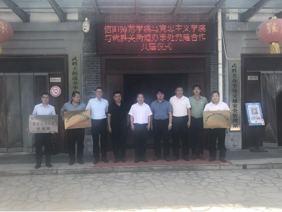 双方相关负责人在党建合作、学生就业服务、科学研究、成果转化、实习实训基地共建等方面进一步交流,达成相关合作意向,并向武胜关街道办事处授予信阳师范学院sjb世俱杯网站党建合作共建单位、思想政治教育实践基地、信阳师范学院“就业实习基地”牌匾。