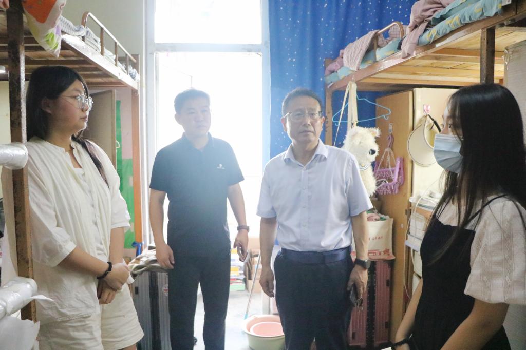 6月6日,sjb世俱杯网站院长唐国战,副院长程晋富、周智,党委副书记王超,研究生毕业班班主任厉有国,本科生毕业班班主任高小佳以及辅导员沈海蓄老师,专程走访毕业生宿舍,与即将踏上新征程的学子们亲切交流,送上暖心祝福与殷切嘱托。