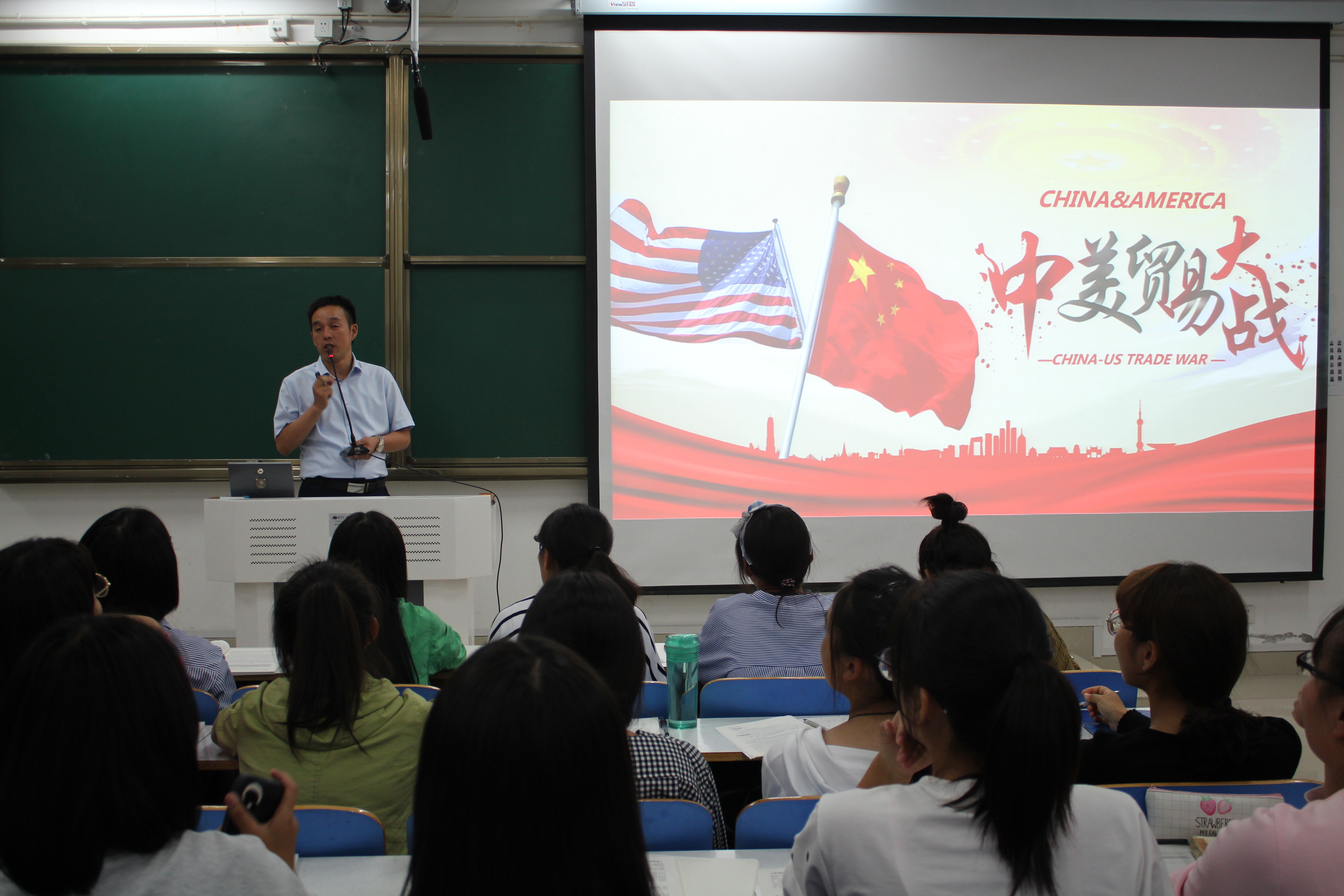 为贯彻落实教社科〔2018〕1号文件,帮助世俱杯官网学子正确认识新时代国内外形势,深刻领会党的十八大以来党和国家事业取得的历史性成就、发生的历史性变革、面临的历史性机遇和挑战,9月28日、9月29日晚,世俱杯官网王帆宇副教授在社科楼514、516教室为世俱杯官网全体学生讲授了题为“中美贸易大战”的形势与政策课。