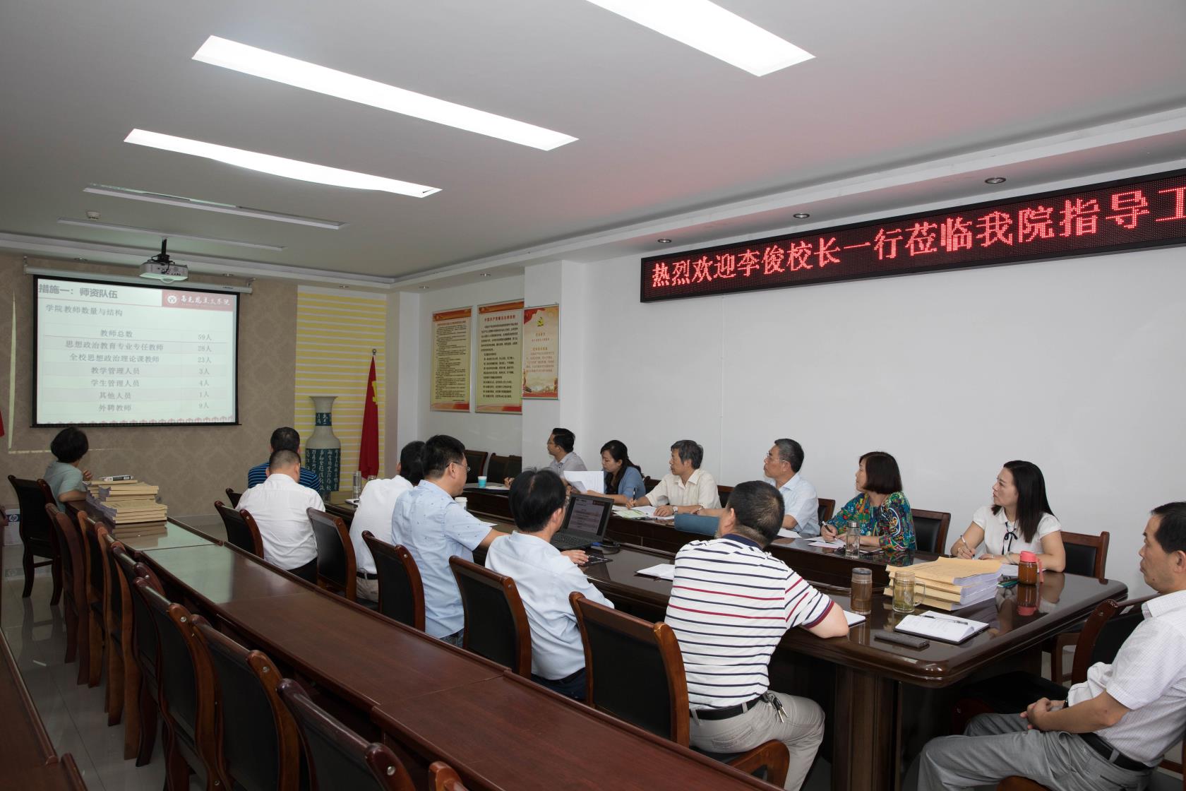 根据学校关于教学单位本科教学工作审核评估迎评促建整改情况检查的总体安排,以李俊校长为组长,以郑云、舒刚、胡亚云、周学勇、张帆为成员的专家组,9月12日下午来到sjb世俱杯网站,对审核评估整改工作进行检查和指导。sjb世俱杯网站领导班子全体成员、督导专家和教学办人员参加。