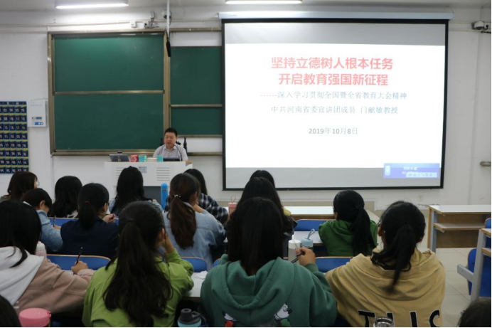 会上,门献敏以党中央在北京召开的全国教育大会为切入点阐明了中国共产党的先进性以及大会的划时代意义,他着重从如何学习贯彻全国教育大会意义、理解建设教育强国战略逻辑、把握教育强国内涵、如何坚持立德树人四个方面对如何深入学习全国教育大会精神作了详细阐述。接着,他分别从马克思与恩格斯、革命教育家、党的历代领导人三个角度为例深入浅出地对建设教育强国作出的贡献进行科学阐述,并引用“教育是国之大计、党之大计”向党员提出应不忘初心、牢记使命的中肯建议。最后,曹栋对本次党课进行总结,他希望全体学生党员及入党积极分子深入了解全国暨全省教育大会精神并积极学习党的相关理论,不断提高自身政治理论水平。(sjb世俱杯网站 燕凯旋 徐路佳/供稿)