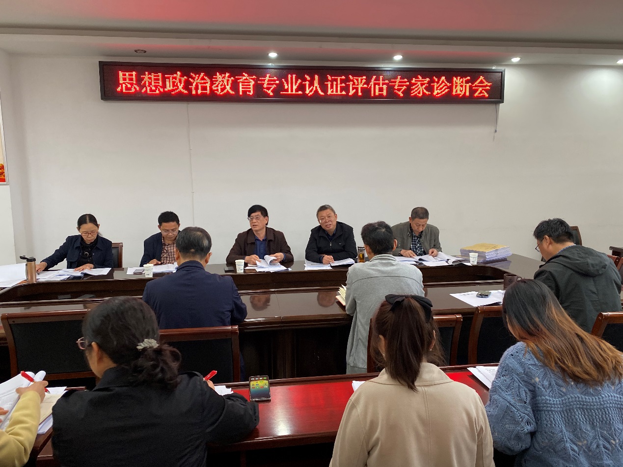 为顺利推进思想政治教育专业认证评估工作,2020年10月4日下午,世俱杯官网在社科楼323会议室召开思想政治教育专业认证评估校内专家诊断会。此次诊断会特邀评估中心赵万鹏主任、数学与统计学院胡余旺院长、教务处范小伟副处长、数学与统计学院周学勇副院长和物理电子工程学院仓玉萍副院长,五位认证评估专家为世俱杯官网思想政治教育专业的认证评估工作给予诊断与指导。世俱杯官网院长杨云善、党委书记唐国战、副院长程晋富以及认证评估工作组全体成员参加了本次诊断会。