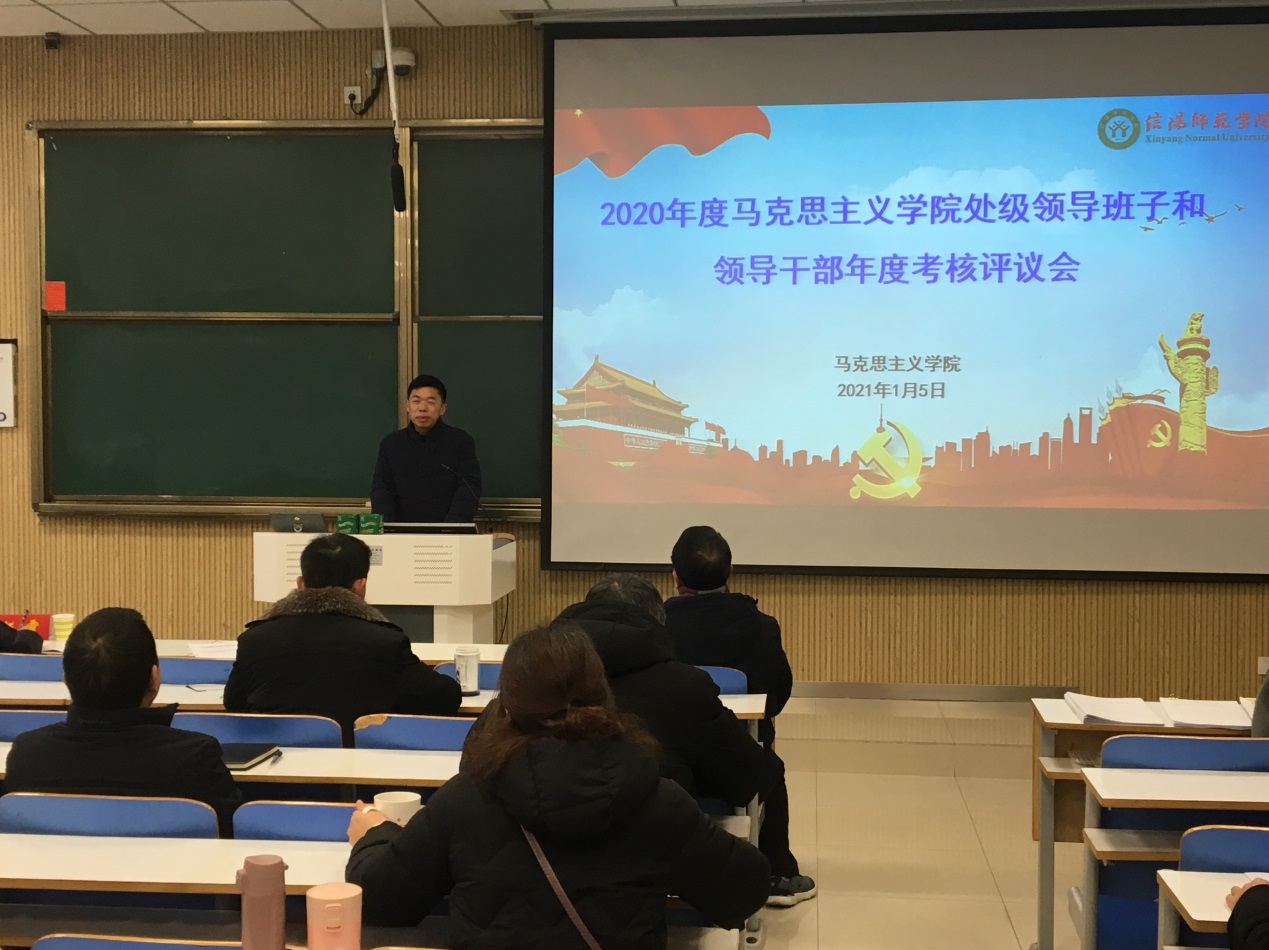 1月5日下午,sjb世俱杯网站在社科楼515召开处级领导班子和领导干部2020年度述职考评大会。学校第三考核组组长、党办主任林兴岚和考核组成员、人事处副处长汪霞出席会议,世俱杯官网处级领导班子成员与全体教职工参加会议。会议由学院党委书记唐国战主持。