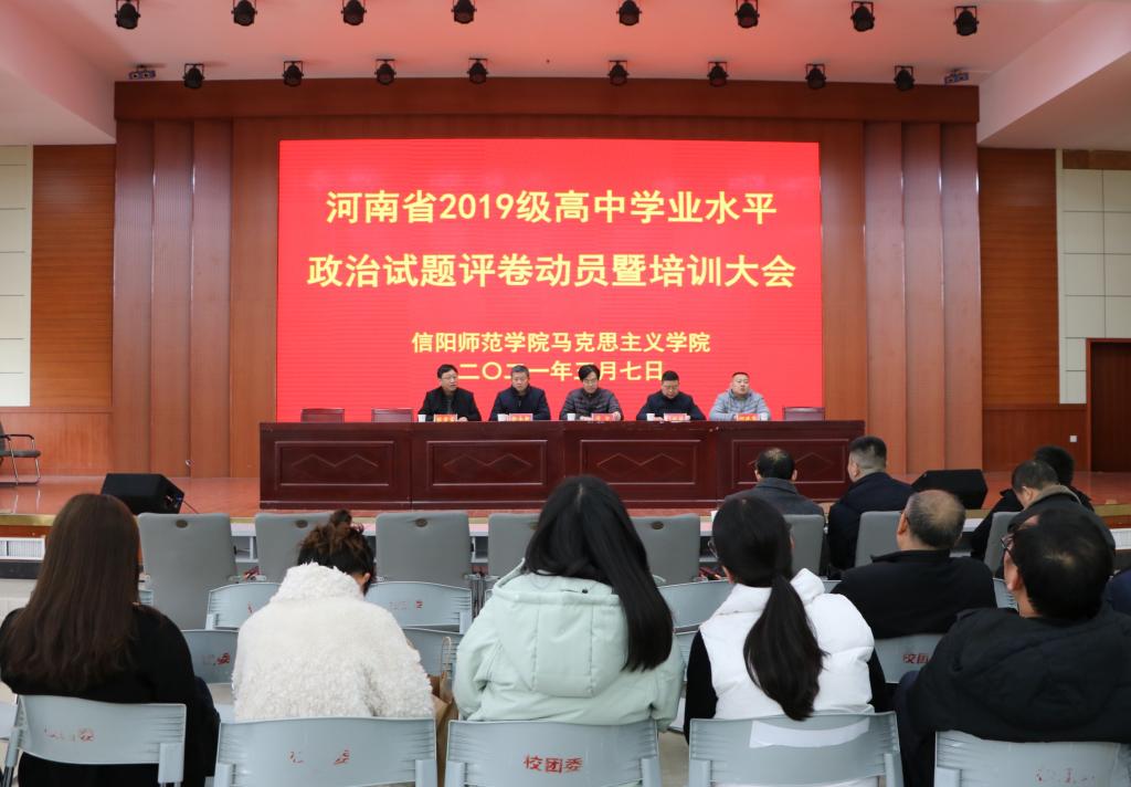 3月7日下午,sjb世俱杯网站在逸夫楼报告厅召开河南省2019级高中学业水平政治试题评卷动员暨培训大会。sjb世俱杯网站副院长周智,当代马克思主义研究所副所长徐永新、门献敏,副院长程晋富,党委副书记何晓坚以及200余名评卷人员共同参加此次大会。大会由程晋富主持。