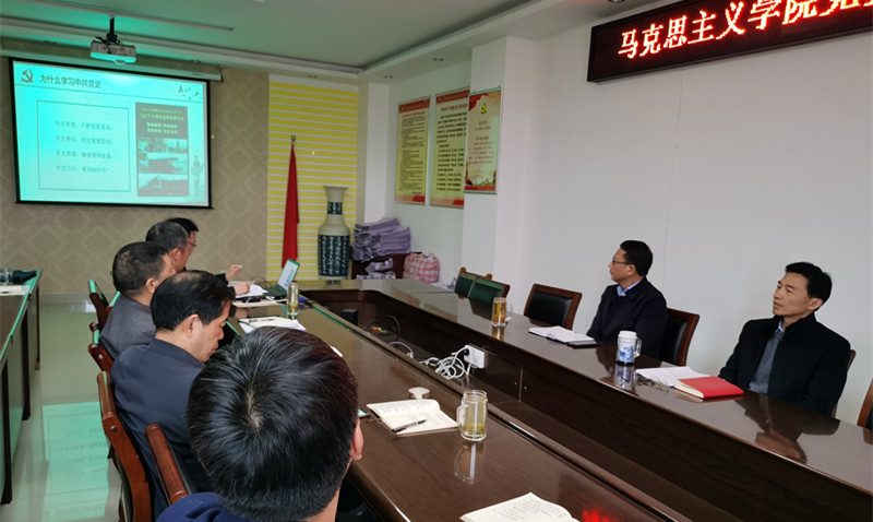 学院党委副书记徐永新传达了校党委书记王文鹏在校党史学习教育动员部署大会上的讲话,党委副书记何晓坚宣读了《sjb世俱杯网站2021年党史学习教育实施方案》。中国近现代史纲要教研室陈杰博士以“全面深入学习党史 汲取奋勇前进的智慧和力量”为题,从为什么学习中共党史、中共党史发展基本脉络、中共党史学习教育的历史特点和经验、当前党史学习教育的要求等四个方面,进行了系统阐释。