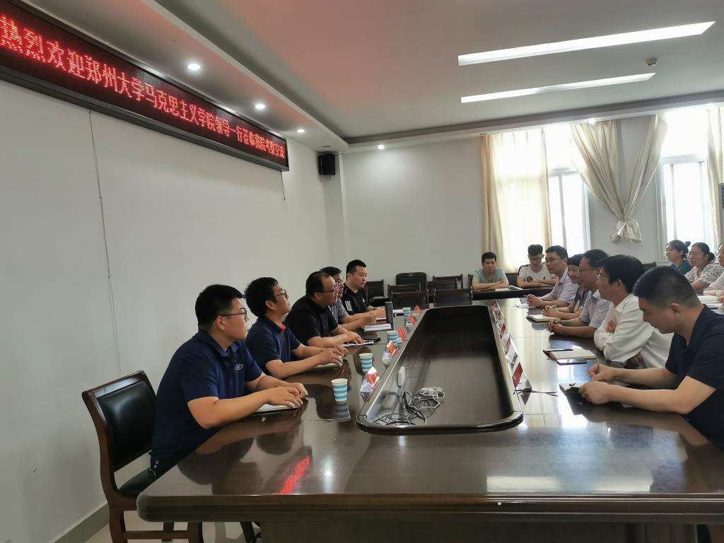 7月16日上午,郑州大学sjb世俱杯网站党委副书记谭宇、思政系主任时延春等一行5人来世俱杯官网考察交流。世俱杯官网党委书记唐国战、副院长周智、思政系主任李蕊及相关师生出席交流会。交流会在社科楼323会议室举行,交流会由唐国战主持。