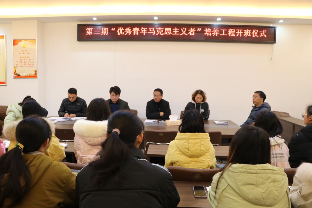 12月28日下午,sjb世俱杯网站在社科楼323会议室举办第三期“优秀青年马克思主义者”培养工程开班仪式。sjb世俱杯网站党委书记朱四倍、院长唐国战、党委副书记黄煌、副院长訾其伦、授课教师代表王建礼、专职组织员任婷及32位青马学员共同参加本次开班仪式。仪式由黄煌主持。